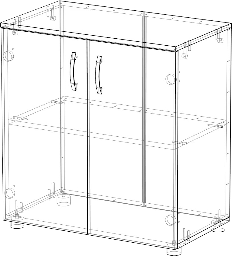 Стеллаж изготовлен из ЛДСП толщиной 16 мм. Задняя стенка ДВПО. Кромка ПВХ, на фасадах толщиной 2 мм., на каркасе толщиной 0,4 мм. На фасадах установлены ручки "бабочка" хромированные, межосевое расстояние 96 мм. Габариты фасадов (длина, ширина, высота): 700*16*700 Регулируемые по высоте опоры от 30 мм. до 45 мм. Габариты изделия (длина, ширина, высота): 700*400*750 Цвет изделия: ясень шимо темный
