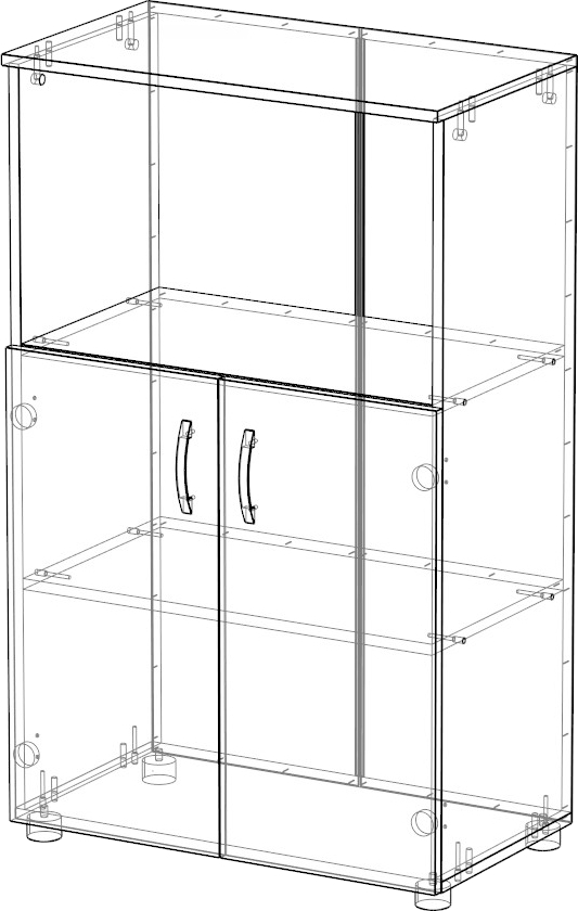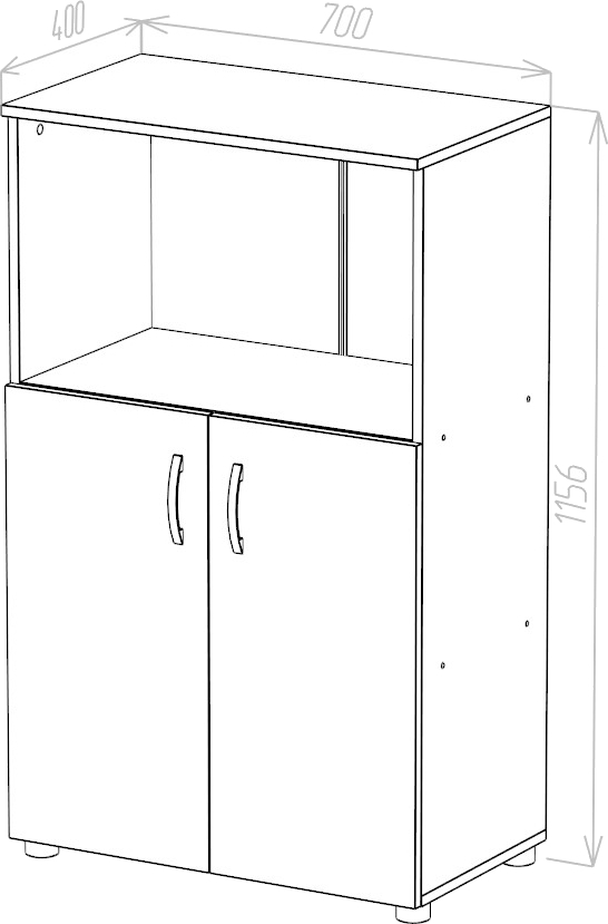 Стеллаж изготовлен из ЛДСП толщиной 16 мм. Задняя стенка ДВПО. Кромка ПВХ, на фасадах толщиной 2 мм., на каркасе толщиной 0,4 мм. На фасадах установлены ручки "бабочка" хромированные, межосевое расстояние 96 мм. Габариты фасадов (длина, ширина, высота): 700*16*700 Регулируемые по высоте опоры от 30 мм. до 45 мм. Габариты изделия (длина, ширина, высота): 700*400*1156 Цвет изделия: ясень шимо темный