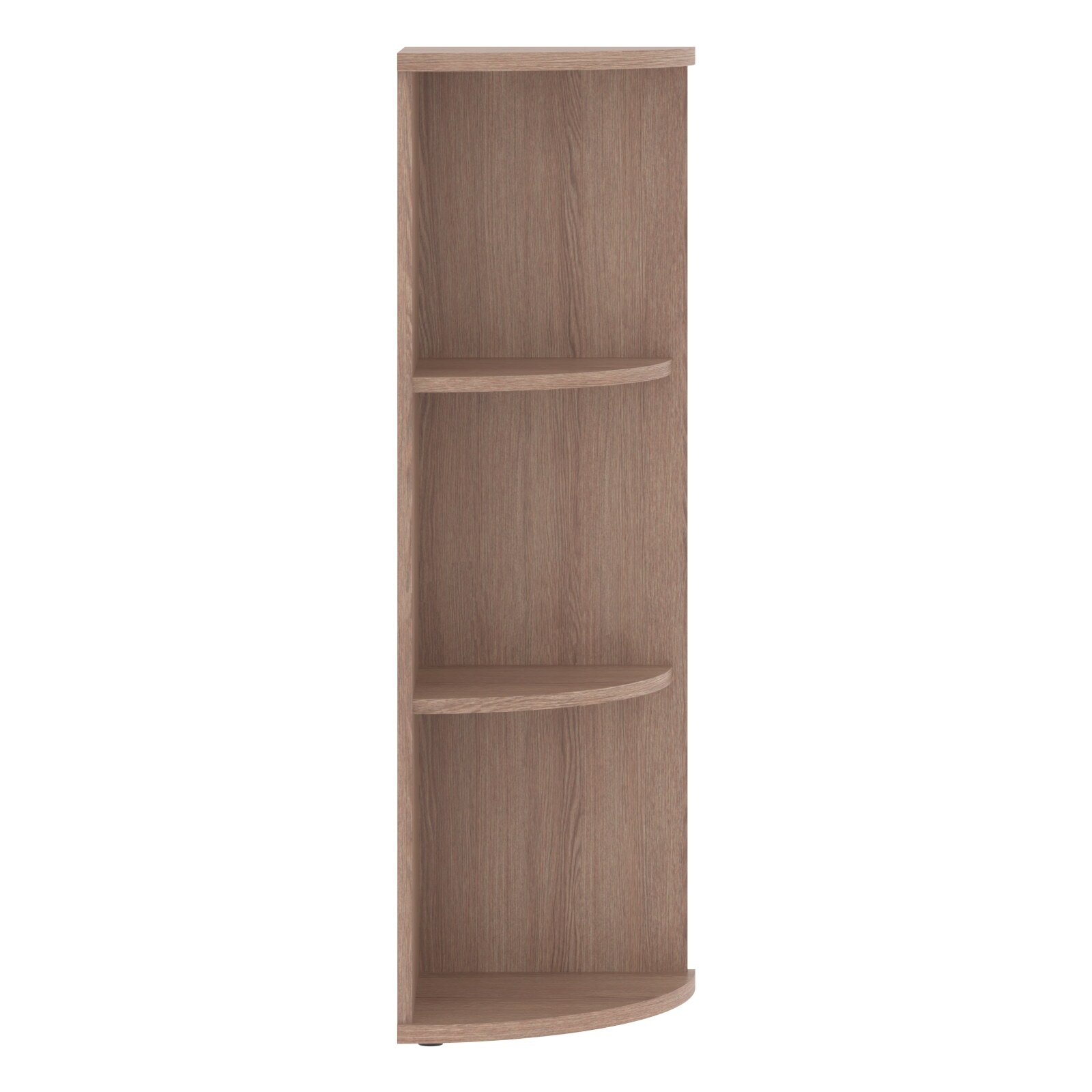 Компактный угловой стеллаж IMAGO для офисного или домашнего использования. Размеры -365х1200х365 мм, цвет – Ясень Шимо. Оснащен 3 просторными и открытыми полочками. Конструкция оснащена прочными силовыми креплениями – эксцентриковыми стяжками. Все торцы основных элементов стеллажа надежно защищены кромкой ПВХ – 2 мм. Регулируемые по высоте опоры обеспечат устойчивость на неровном полу.