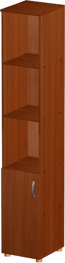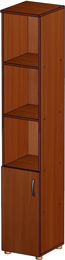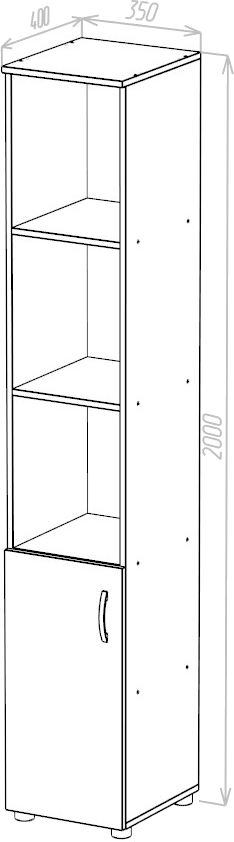 Стеллаж изготовлен из ЛДСП толщиной 16 мм. Задняя стенка ДВПО. Кромка ПВХ, на фасаде толщиной 2 мм., на каркасе толщиной 0,4 мм. На фасаде установлена ручка "бабочка" хромированная, межосевое расстояние 96 мм. Габариты фасада (длина, ширина, высота): 348*16*700 Направление открывания: левое. Регулируемые по высоте опоры от 30 мм. до 45 мм. Габариты изделия (длина, ширина, высота): 350*400*2000 Цвет изделия: вишня оксфорд