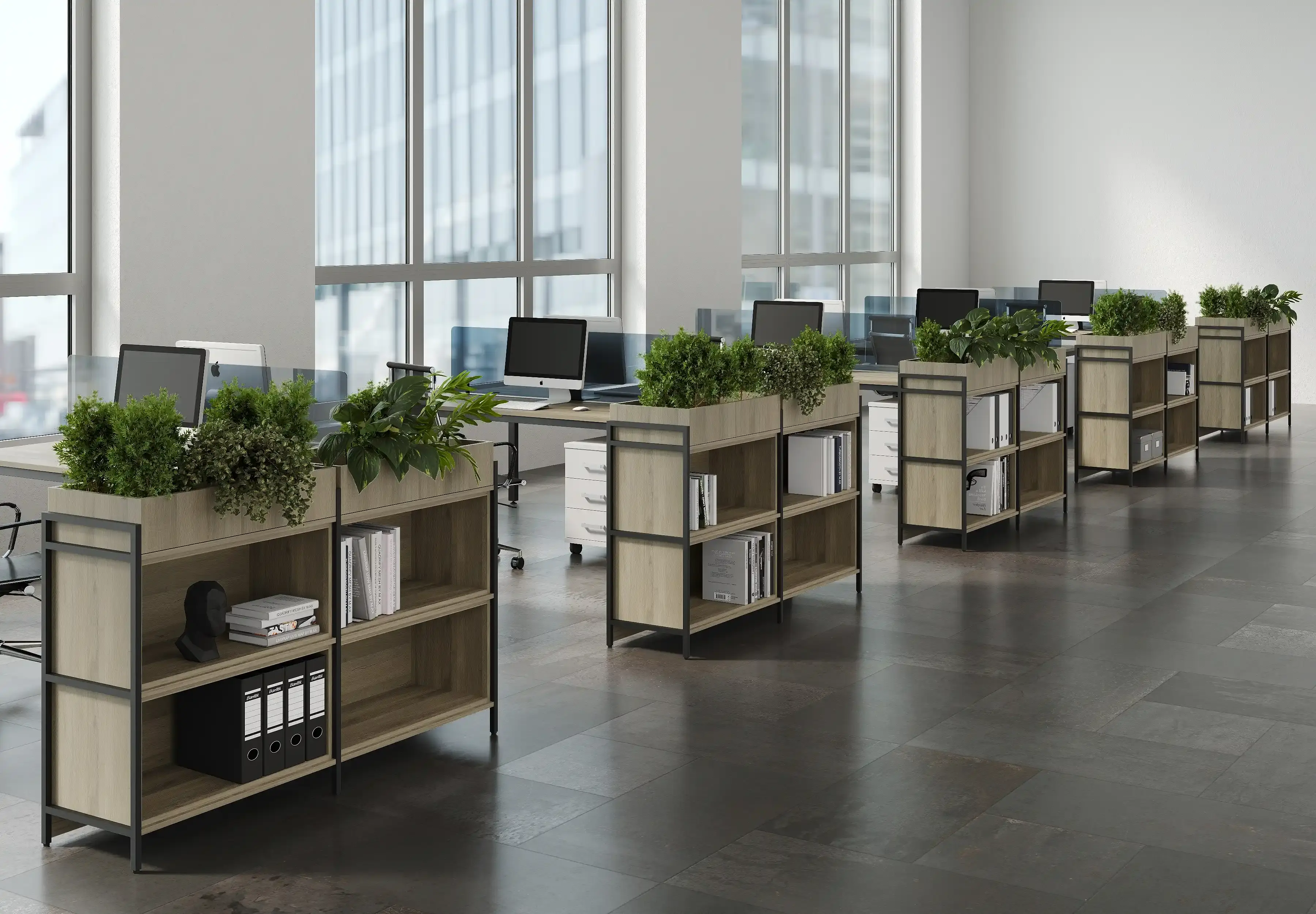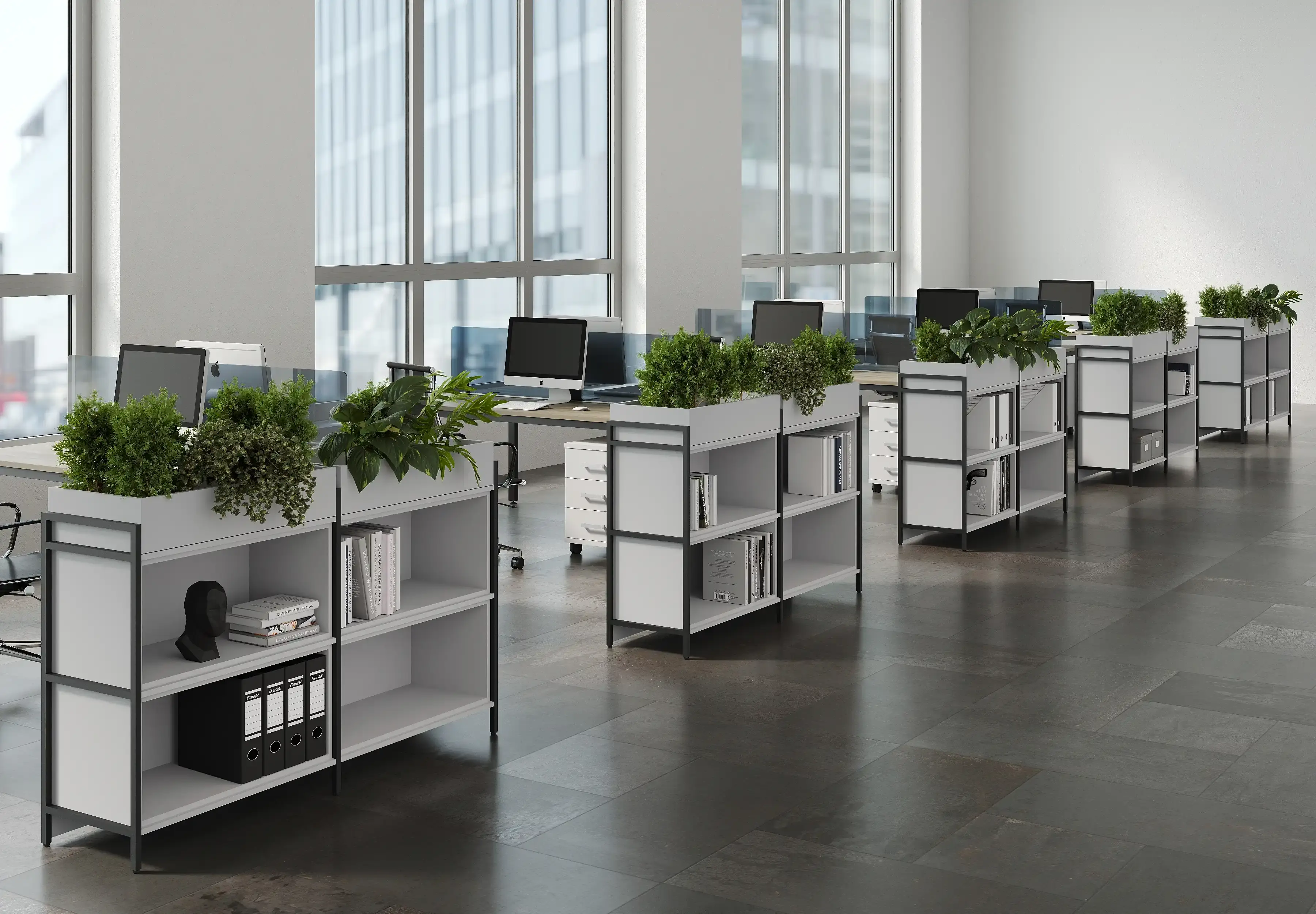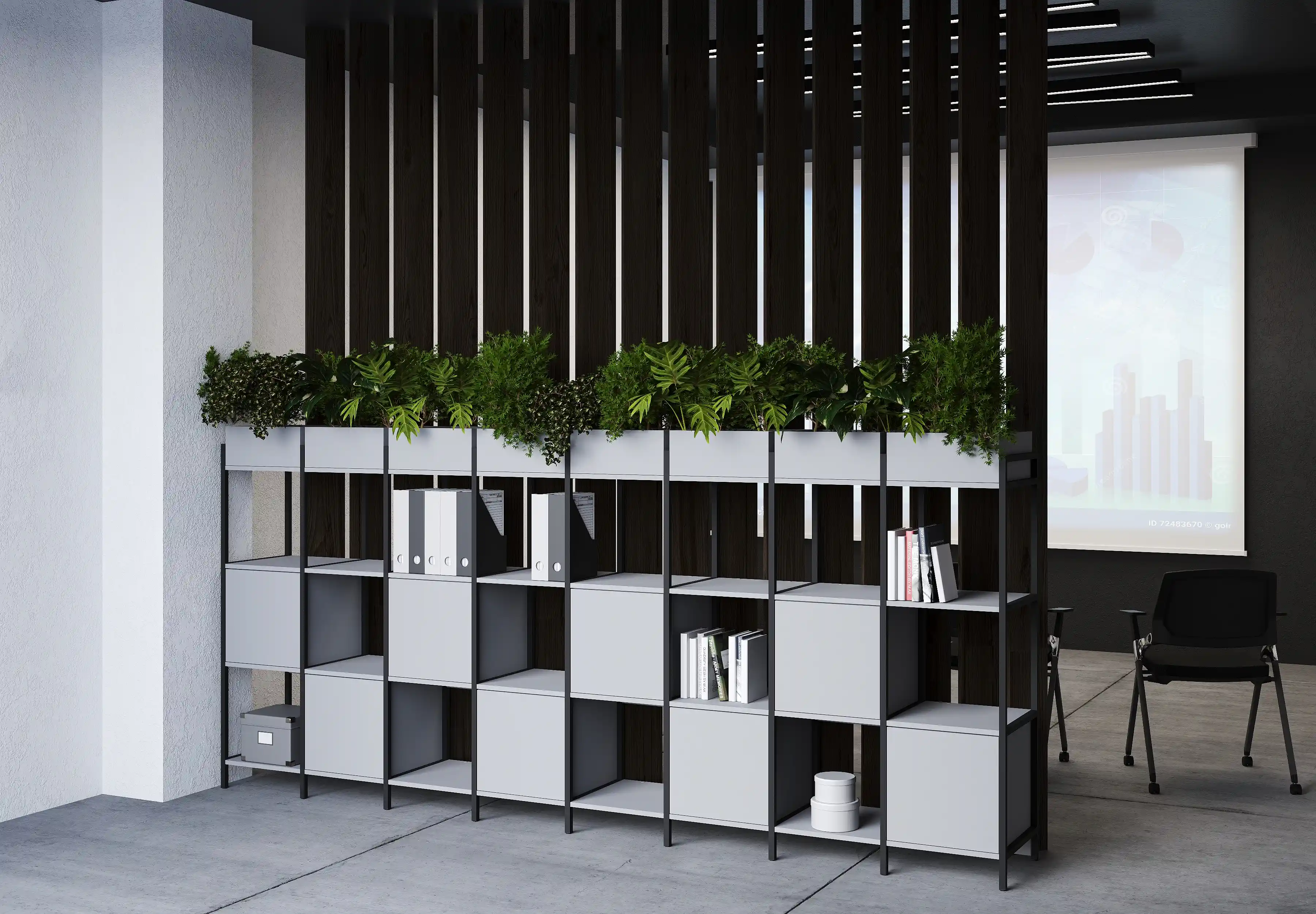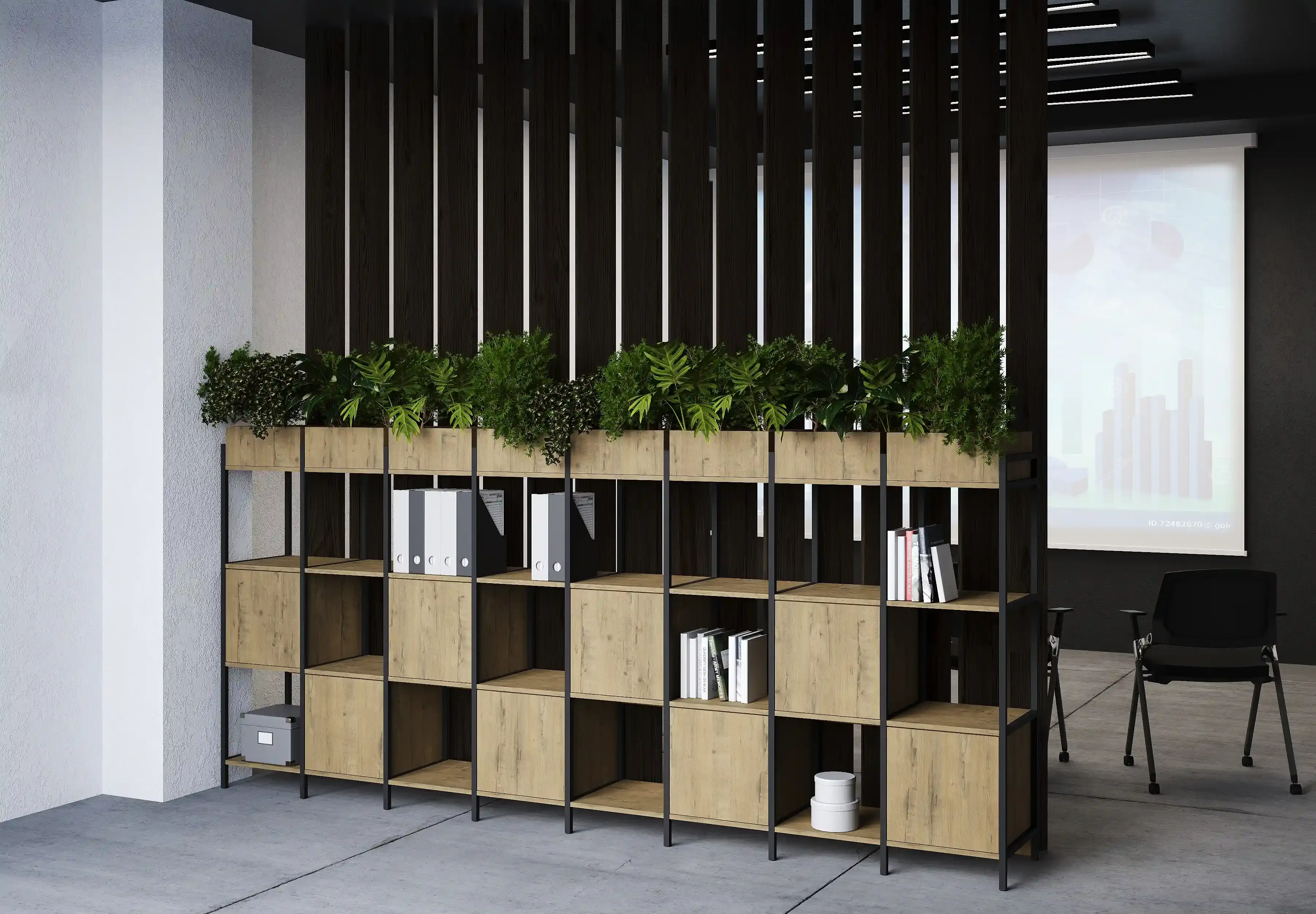 В условиях современного офиса, где важны гибкость и адаптивность, модульные стеллажи Cubos предлагают оптимальное решение для зонирования пространства. Они позволяют легко создавать отдельные рабочие зоны, места для отдыха и переговорные комнаты, сохраняя при этом целостность и функциональность интерьера.