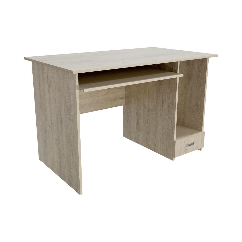 Письменный стол СФ214 коллекции Континент. Столешница выполнена из деревоплиты с ламинированным покрытием (ЛДСП) цвета орех. Столешница имеет толщину 22 мм, а основание стола 16 мм. Кромка покрыта лентой ПВХ у столешницы — 2 мм, а у основания — 0,4 мм. Стол устанавливается на регулируемые по высоте опоры. Высота стола — 750 мм, размеры столешницы — 1200×704 мм.