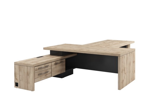 Стол левый 2000х2000х750 с опорной тумбой, блоком розеток и брифингом 1700 T-920L.1000-02