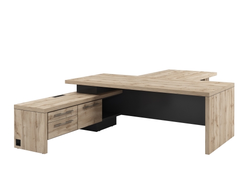 Стол левый 2200х2000х750 с опорной тумбой, блоком розеток и брифингом 1150 T-822L.1000-02