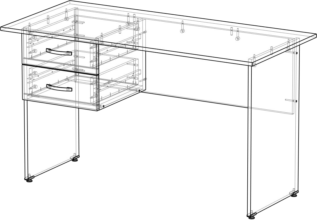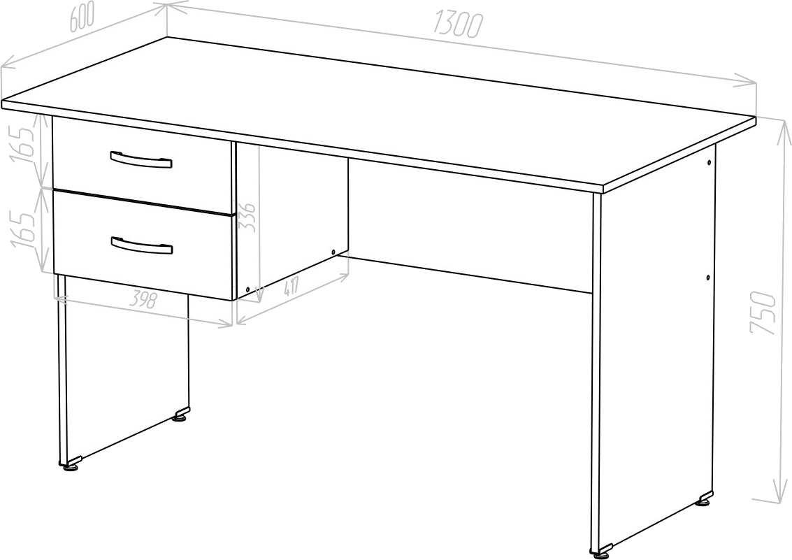 Столешница и опоры изготовлены из ЛДСП толщиной 16 мм. Кромка ПВХ, на столешнице и фасадах толщиной 2 мм, на опорах и наполнении 0,4 мм. Регулируемые по высоте опоры. Направляющие шариковые полно выкатные. Габариты изделия (длина, ширина, высота): 1300*600*750 Цвет изделия: ясень шимо темный