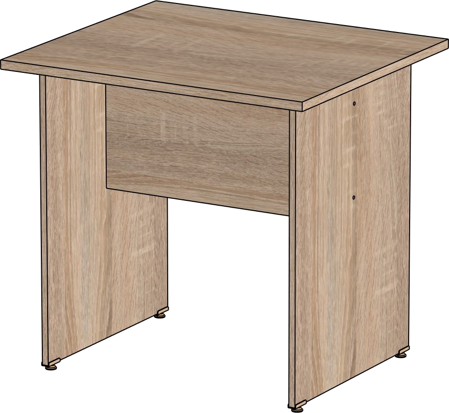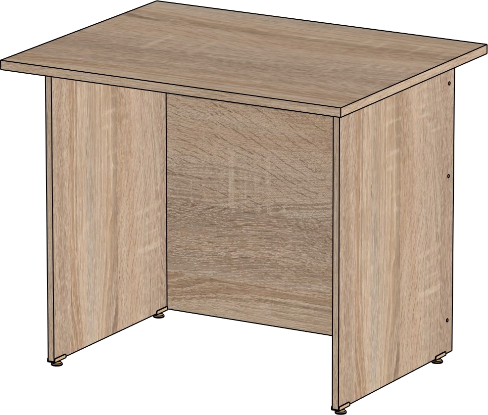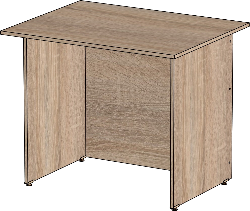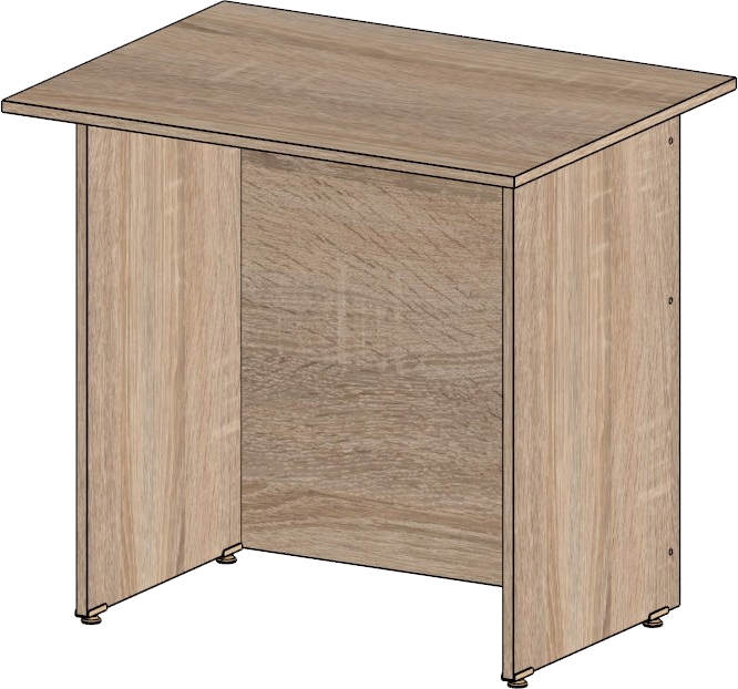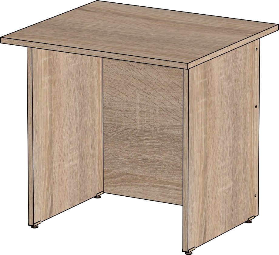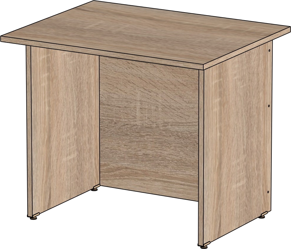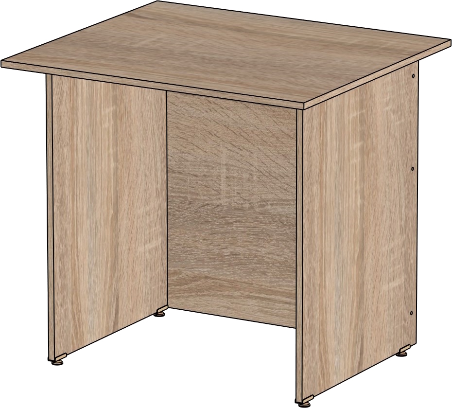 Столешница и опоры изготовлены из ЛДСП толщиной 16 мм. Кромка ПВХ, на столешнице толщиной 2 мм, на опорах 0,4 мм. Регулируемые по высоте опоры. Габариты изделия (длина, ширина, высота): 800*600*750 Цвет изделия: дуб сонома
