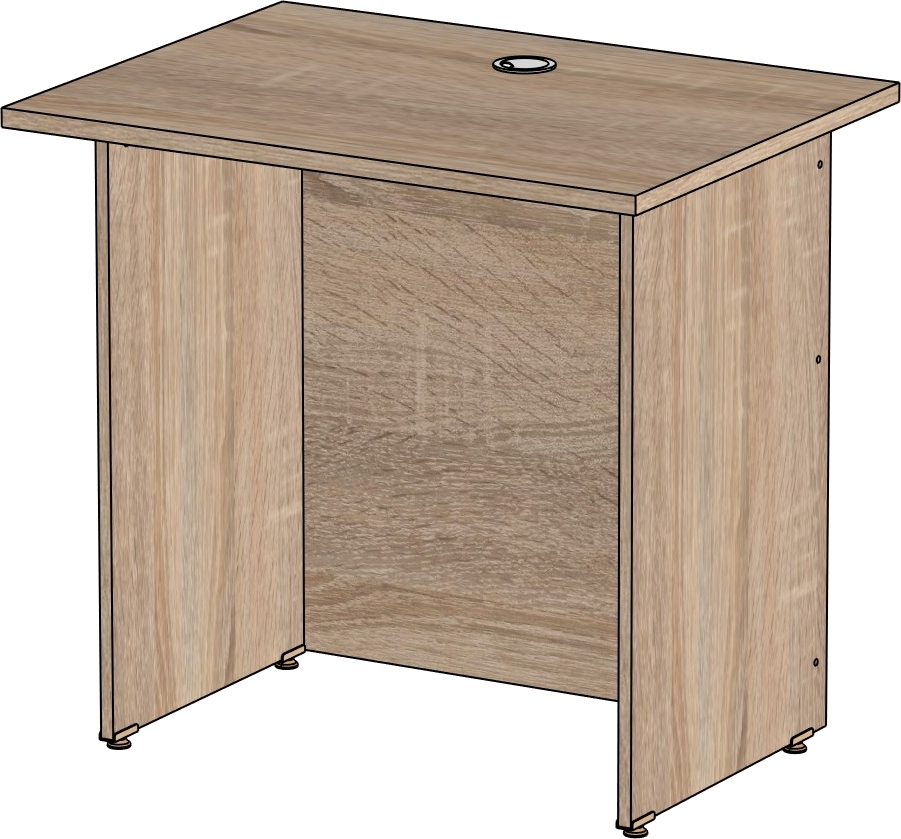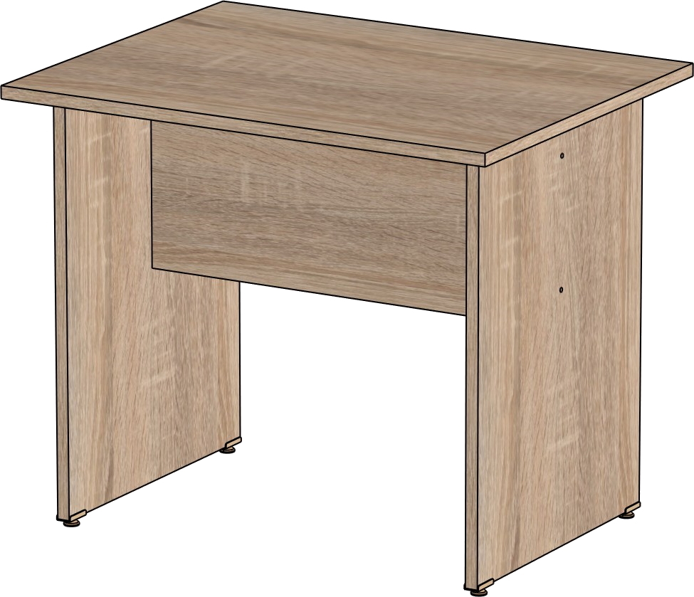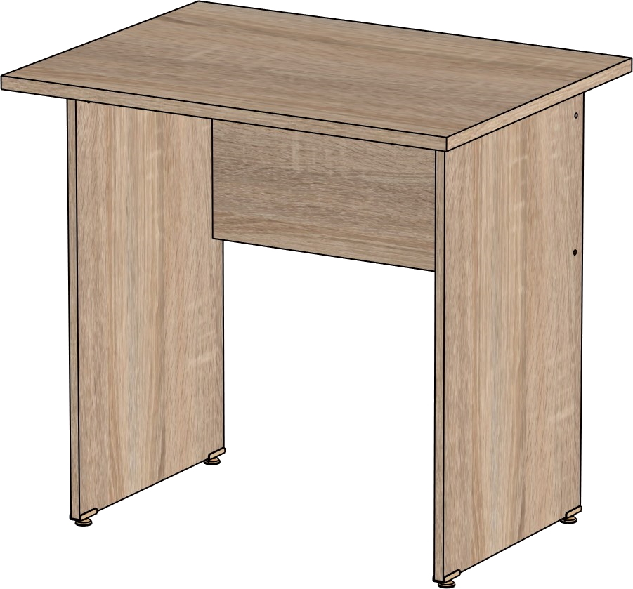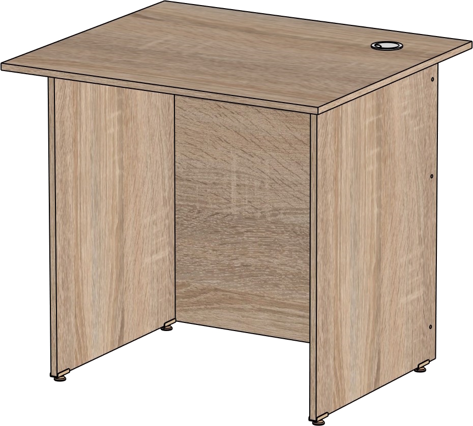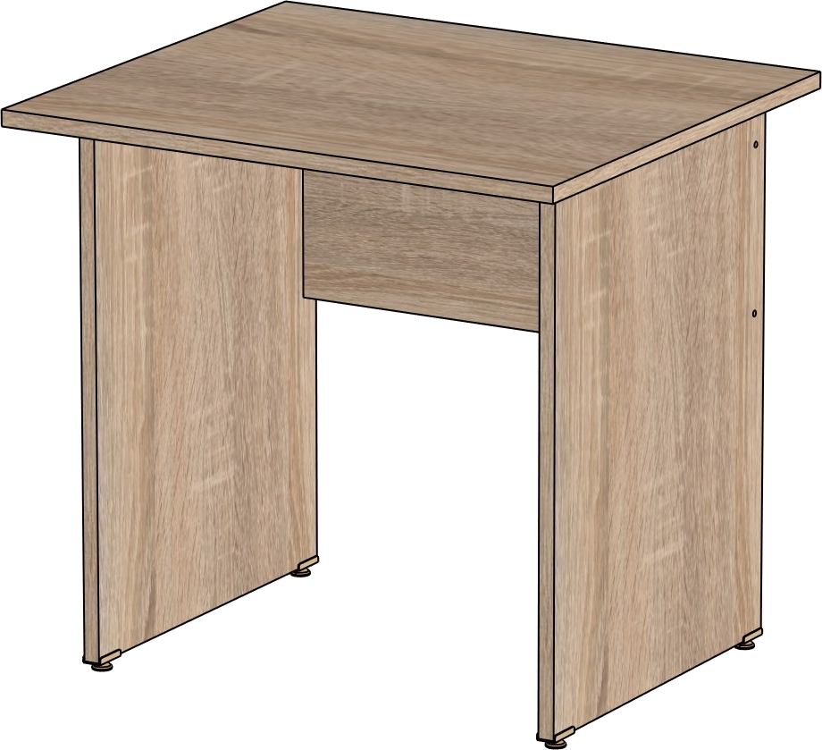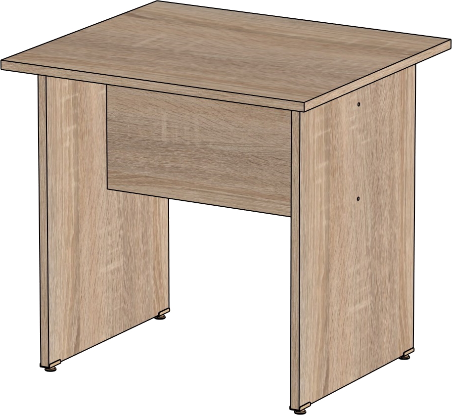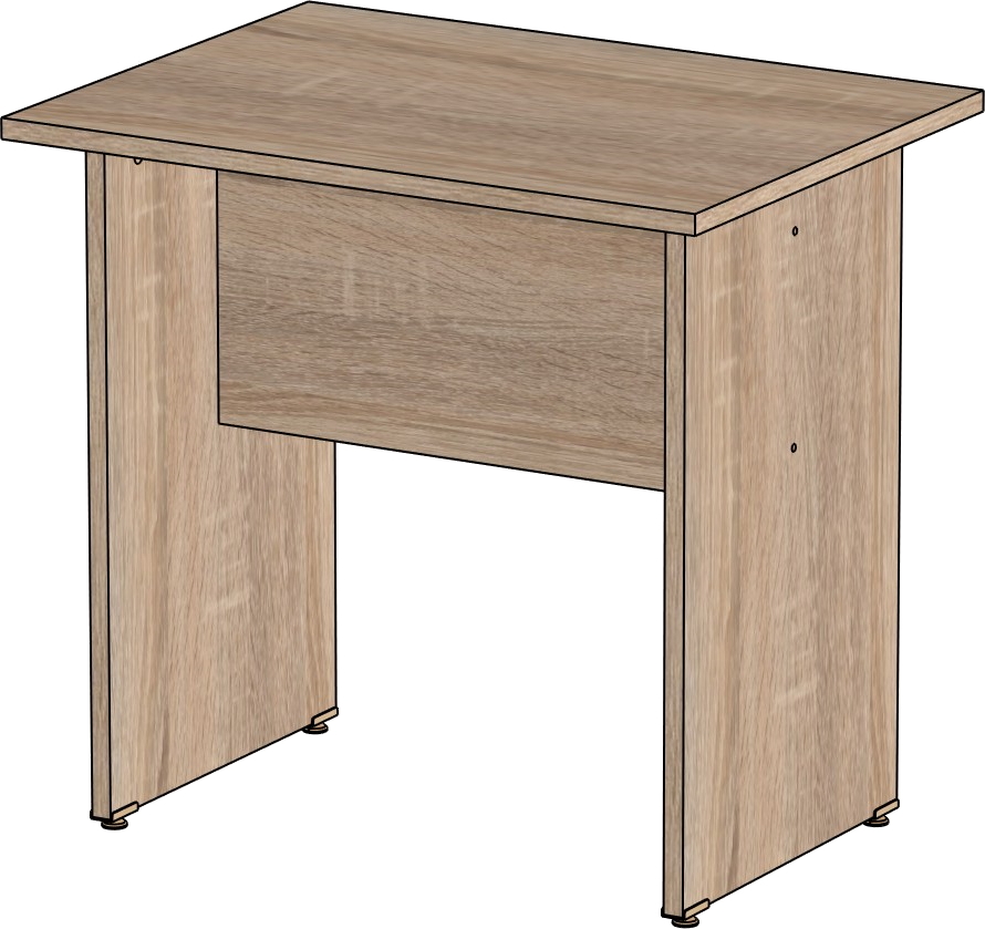 Столешница и опоры изготовлены из ЛДСП толщиной 16 мм. Кромка ПВХ, на столешнице толщиной 2 мм, на опорах 0,4 мм. Регулируемые по высоте опоры. Габариты изделия (длина, ширина, высота): 800*600*750 Цвет изделия: дуб сонома