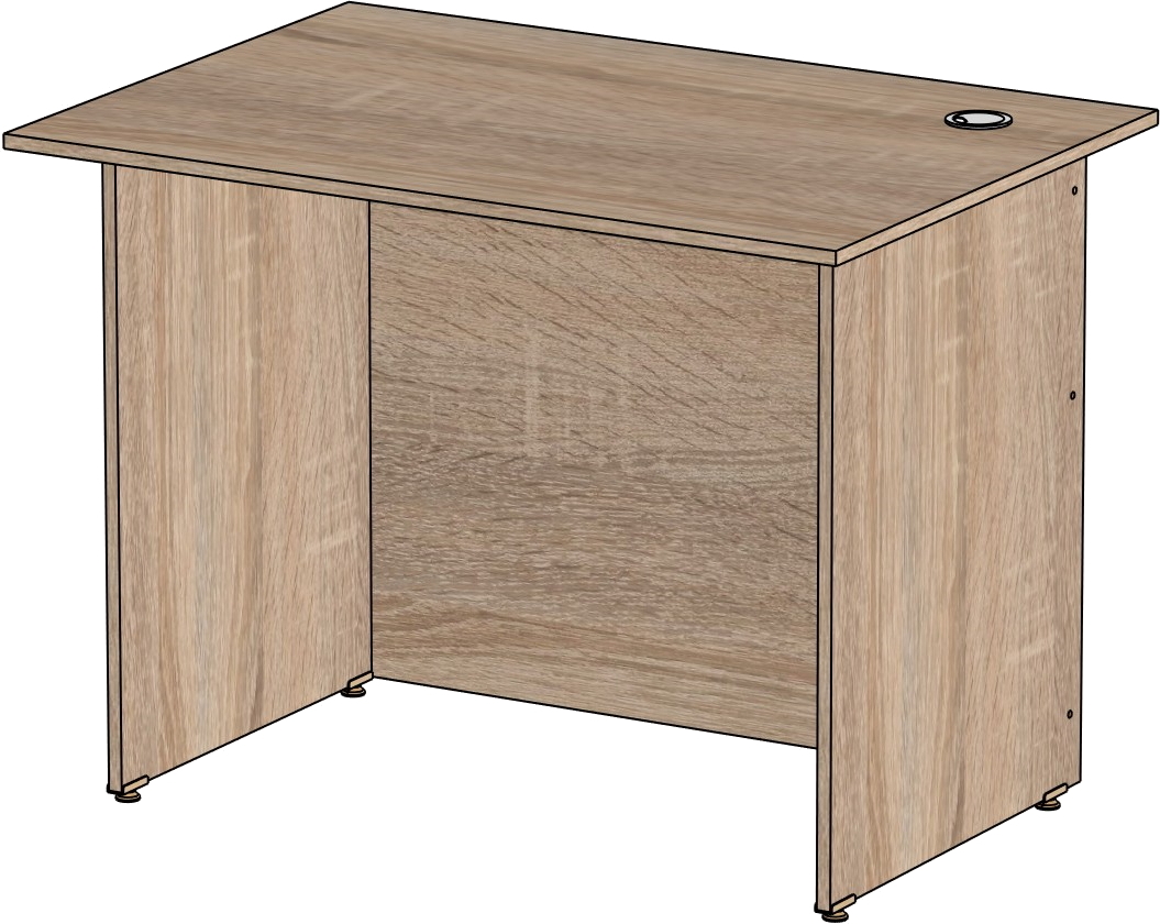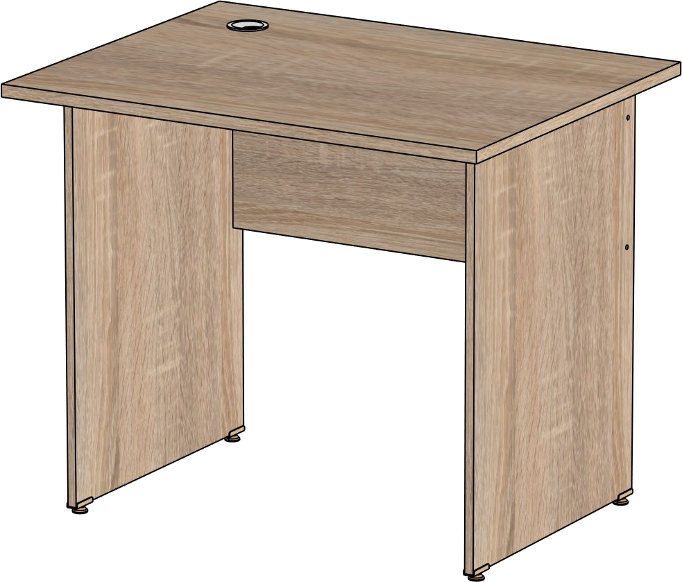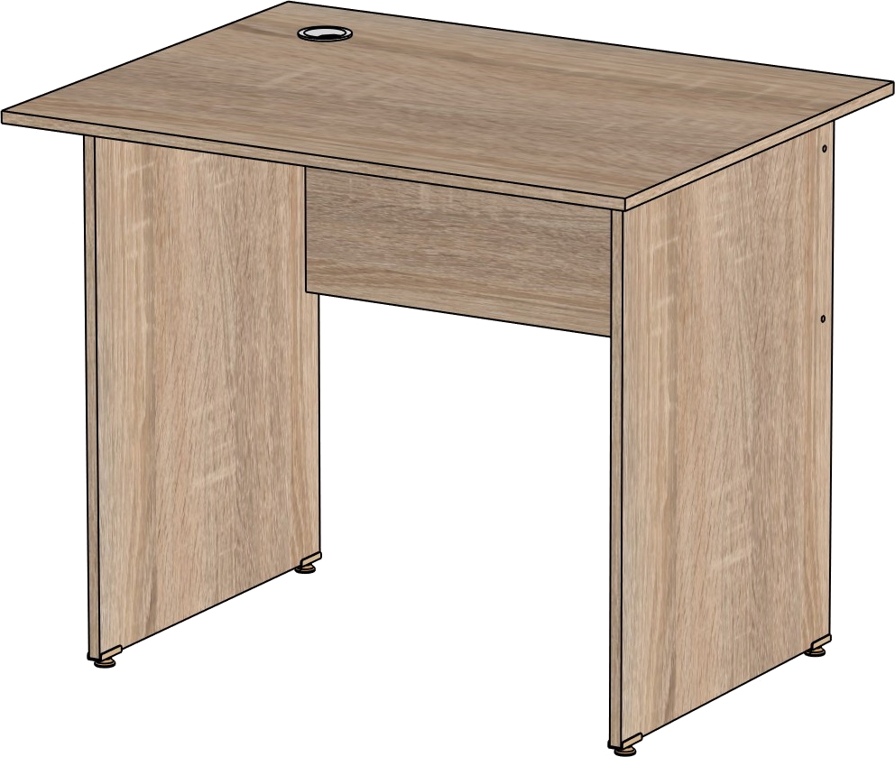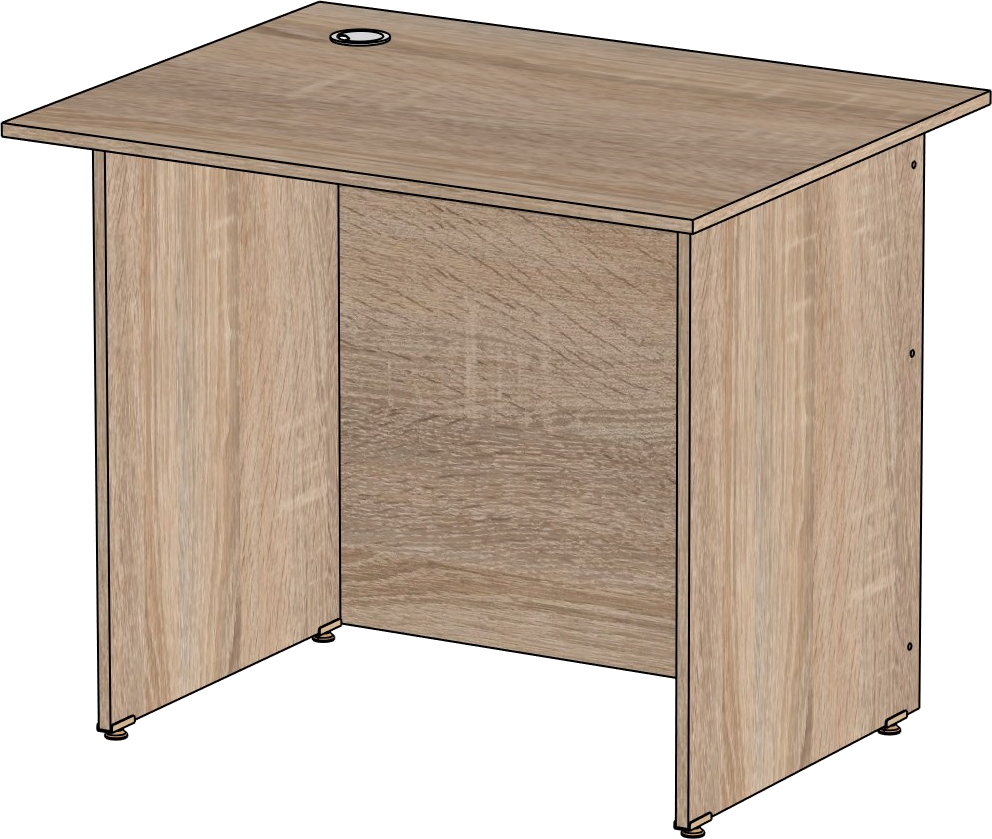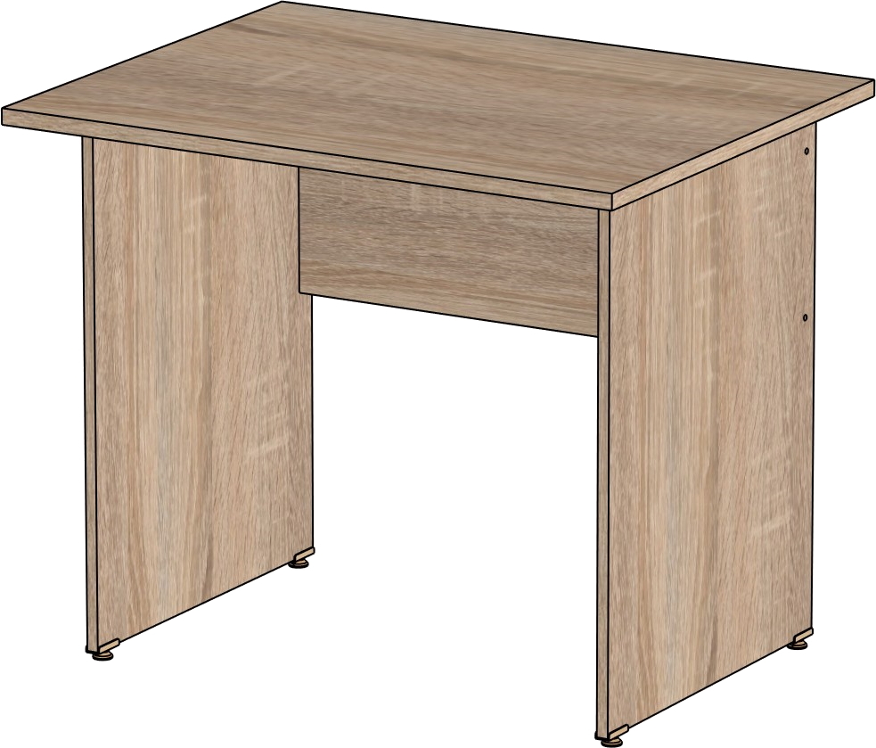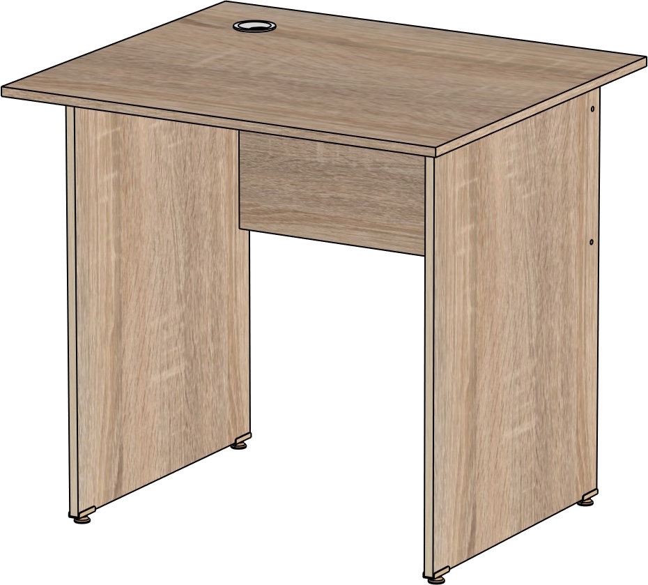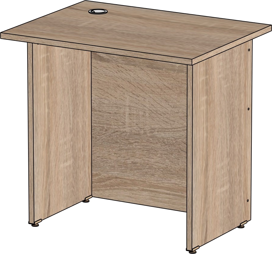 Столешница и опоры изготовлены из ЛДСП толщиной 16 мм. Кромка ПВХ, на столешнице толщиной 2 мм, на опорах 0,4 мм. Регулируемые по высоте опоры. Габариты изделия (длина, ширина, высота): 800*600*750 Цвет изделия: дуб сонома