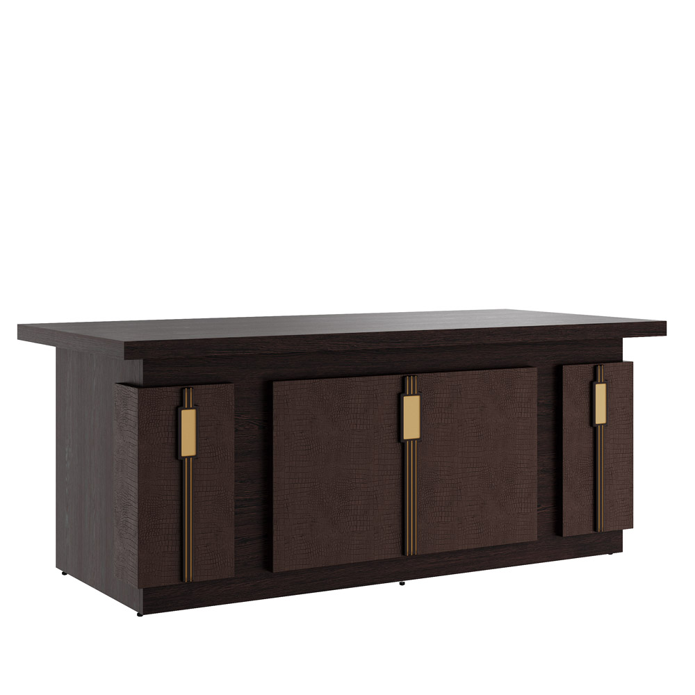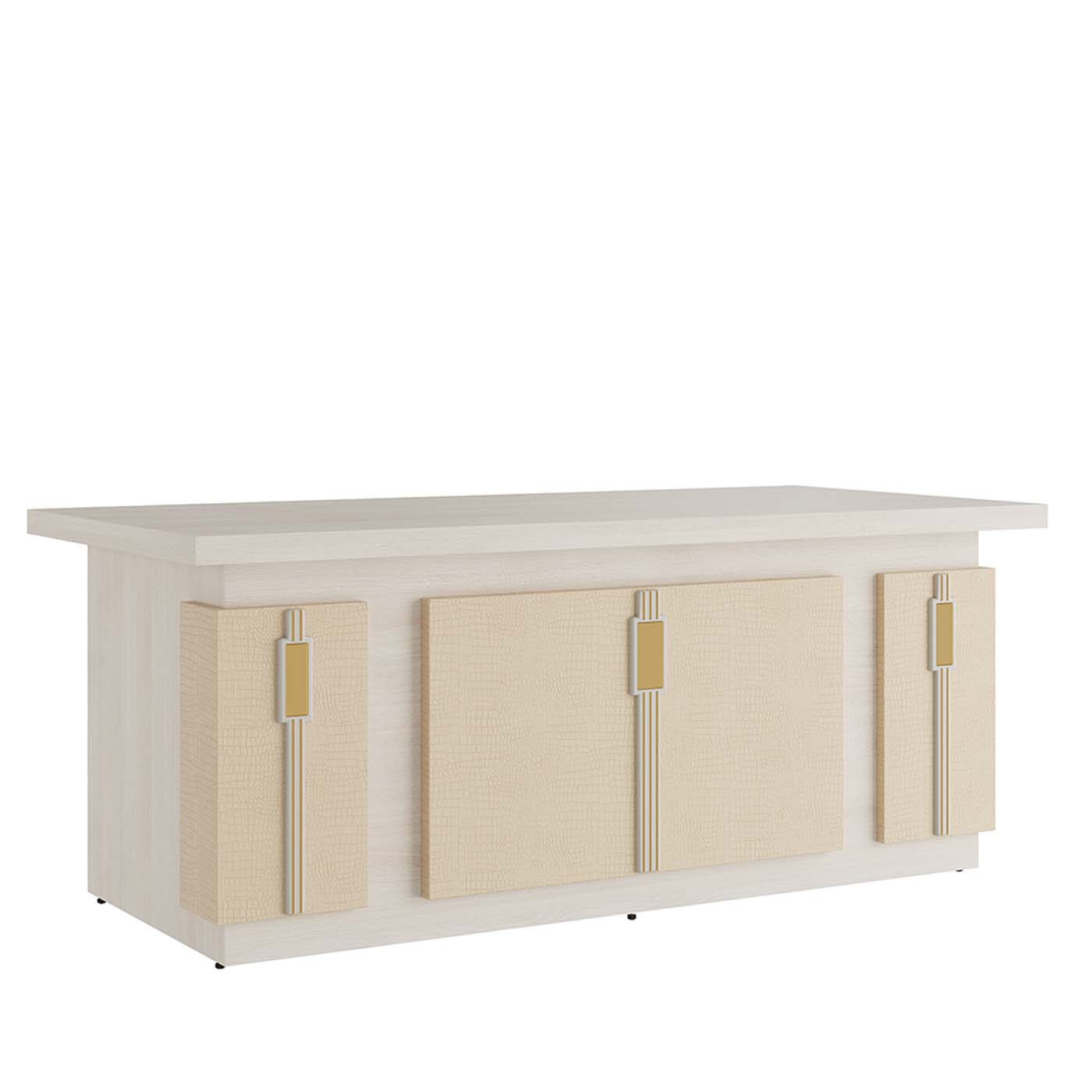 материал: ЛДСП, МДФ, экокожа толщина столешниц: 50 мм толщина топов тумб, шкафов: 25 мм толщина каркасов: 18 мм кромка столешниц, топов: ПВХ стекло тонированное в массе _ задние стенки шкафов: ЛДСП, 10 мм гарантия: 18 месяцев