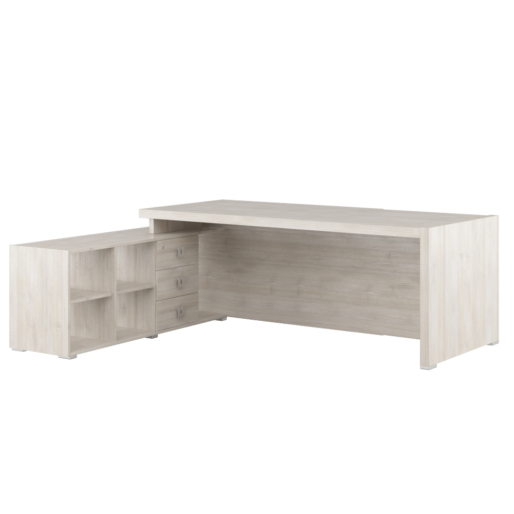 материал: ЛДСП толщина столешниц и опор: 54 мм кромка: ПВХ 2 мм опоры: регулируемые толщина каркасов: 18 мм задние стенки шкафов: ЛДСП 18 мм / ХДФ белого цвета стекло: матовое в алюминиевой раме фасады: петли с доводчиками гардероб: вешало выдвижное толщина топов тумб: 18 мм ящики тумб: метабокс, верхний ящик с замком