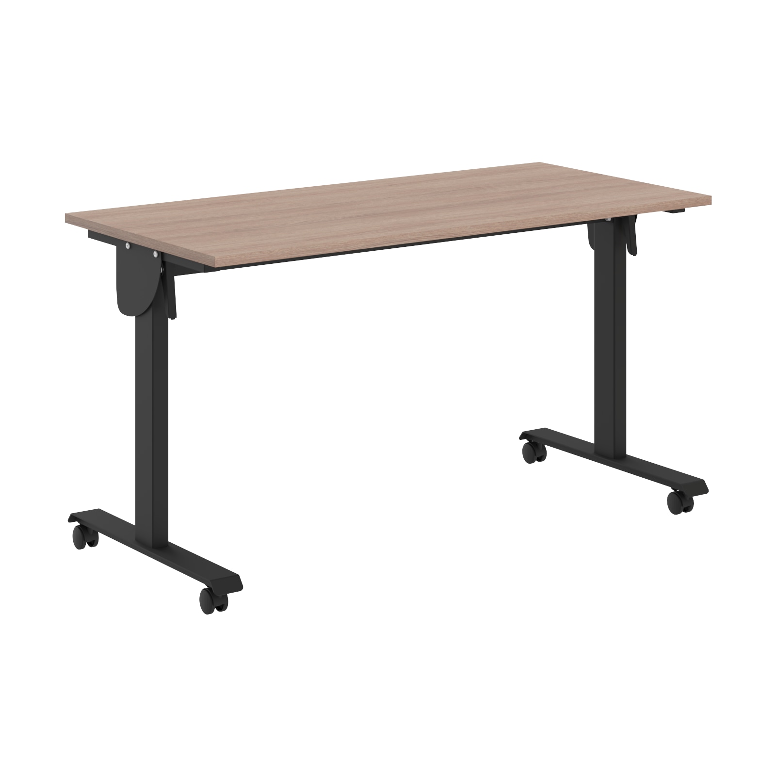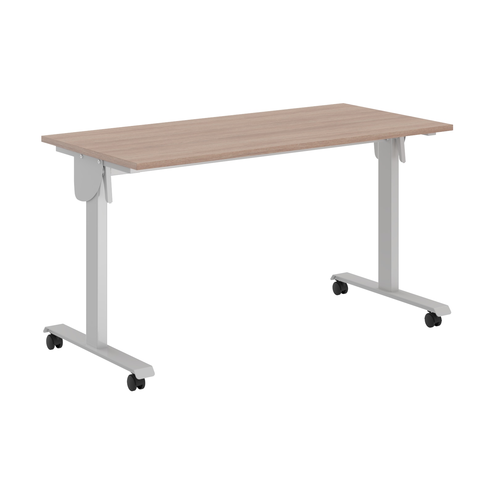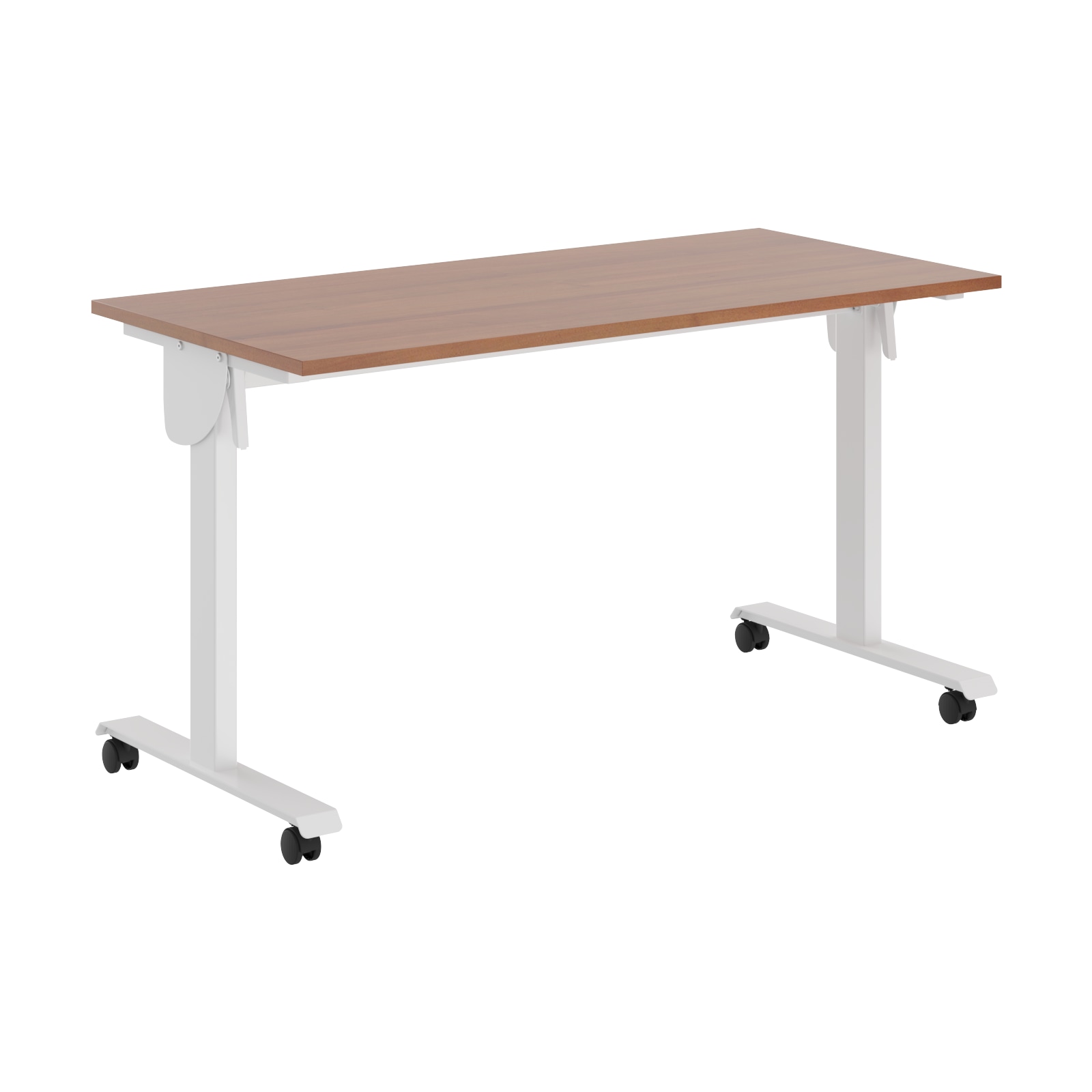 Столешница из ЛДСП т.22мм, кромка ПВХ т. 2мм по периметру, без кабель-каналов. Металлокаркас из двух Т-образных опор на колесах со стоппером, сечением 80х40мм и толщиной металла 2 мм. Подвижная часть стола включает в себя две направляющие из трубы 40х25мм с рычагами для фиксации столешницы с каждой из сторон. Размеры одного стола в сложенном состоянии: 1350/1550х644,5х1100мм. При составлении нескольких столов каждый стол добавляет 135 мм к глубине и 80 мм к длине.