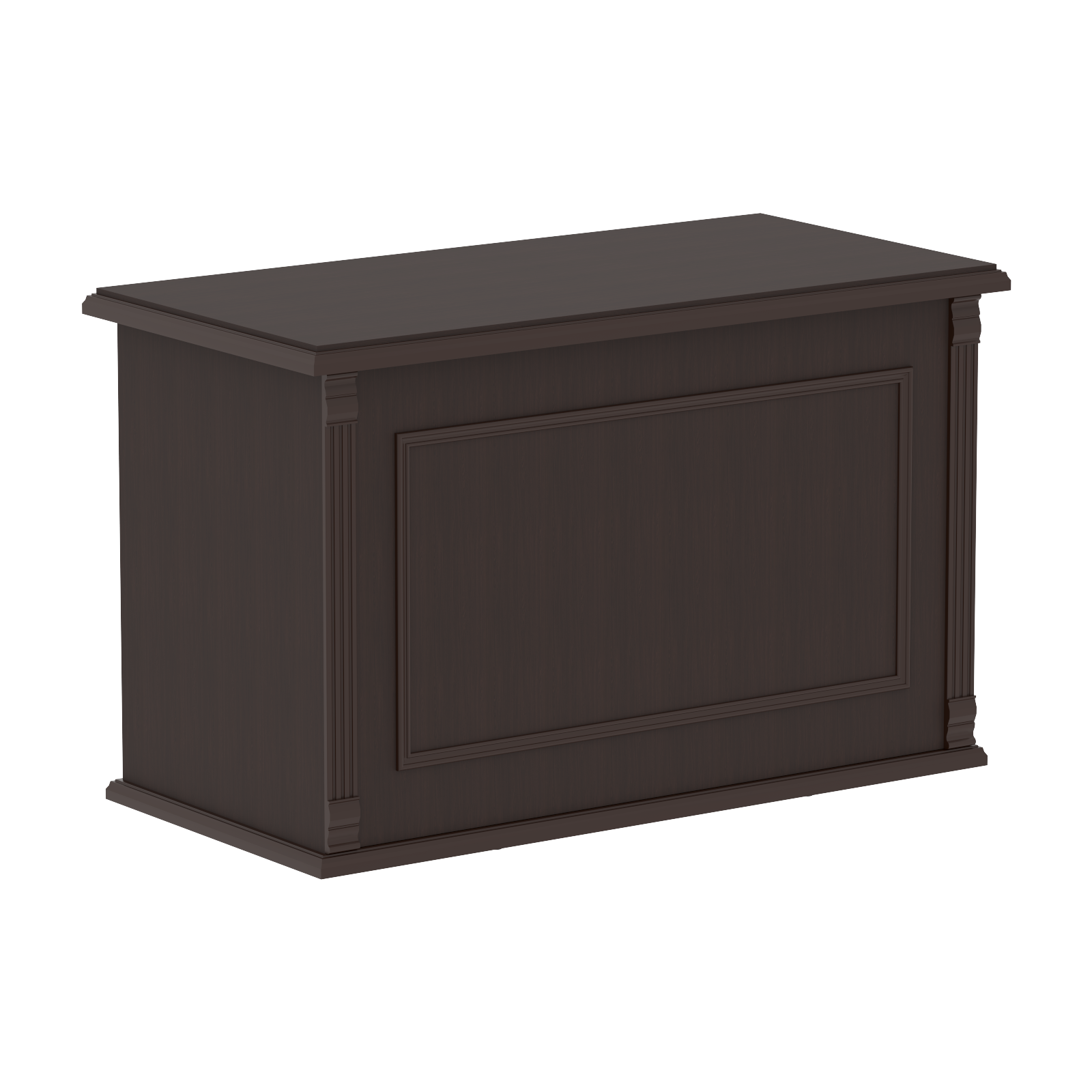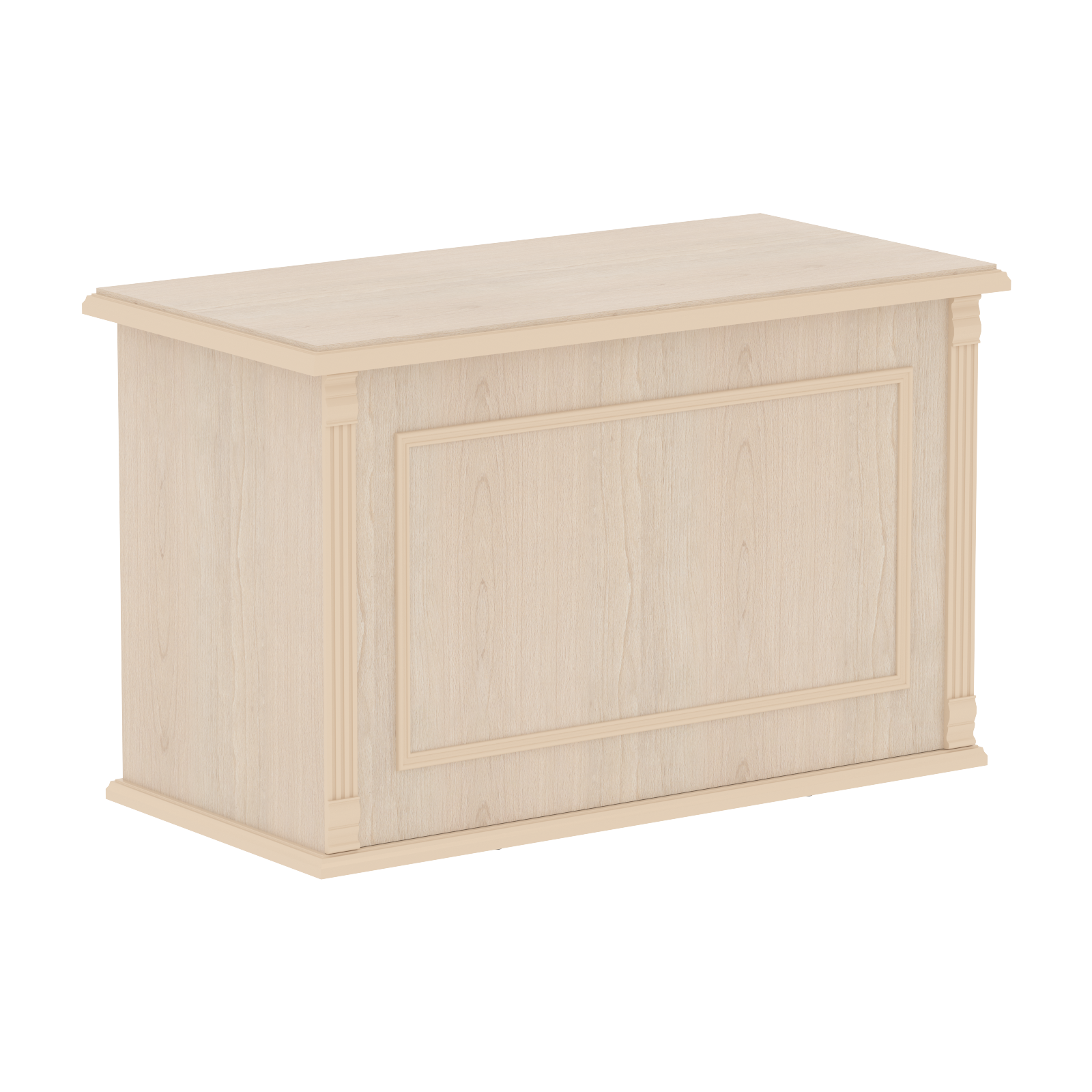 Столешница и опоры из ЛДСП т.18мм с крашенным рамочным фрезерованным профилем из МДФ т.30мм. Фронтальная панель из ЛДСП т.18мм с крашенной раскладкой из МДФ т.10мм и основанием внизу из МДФ т.30мм. Надставка на столешнице из ЛДСП т.18мм, сверху фрезерованный крашенный профиль из МДФ т.30мм.