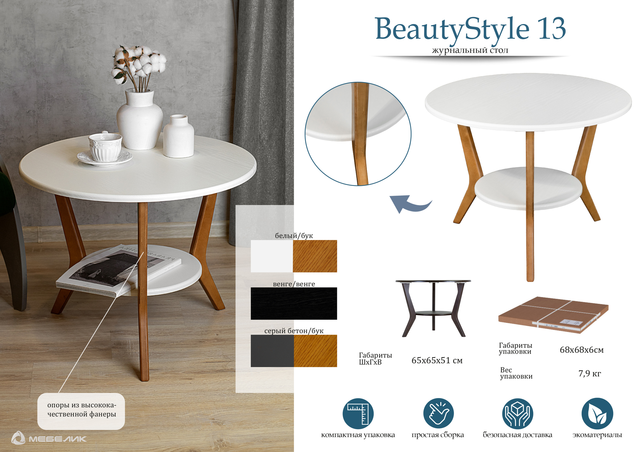 Журнальный столик BeautyStyle 13 – это идеальное сочетание стиля и функциональности. Столешница и полочка, выполненные из высококачественного МДФ, придают этому столику современный и элегантный вид. Деревянные ножки, изготовленные из фанеры, обеспечивают прочность и долговечность. Небольшая полка под столешницей позволяет хранить книги, журналы или другие мелочи, обеспечивая порядок и организованность. МАТЕРИАЛЫ: МДФ+плёнка, фанера УПАКОВКА: 68*68*6 см ,место ВЕС: 7,9 кг Цвет: белый/бук, венге/венге, серый бетон/бук