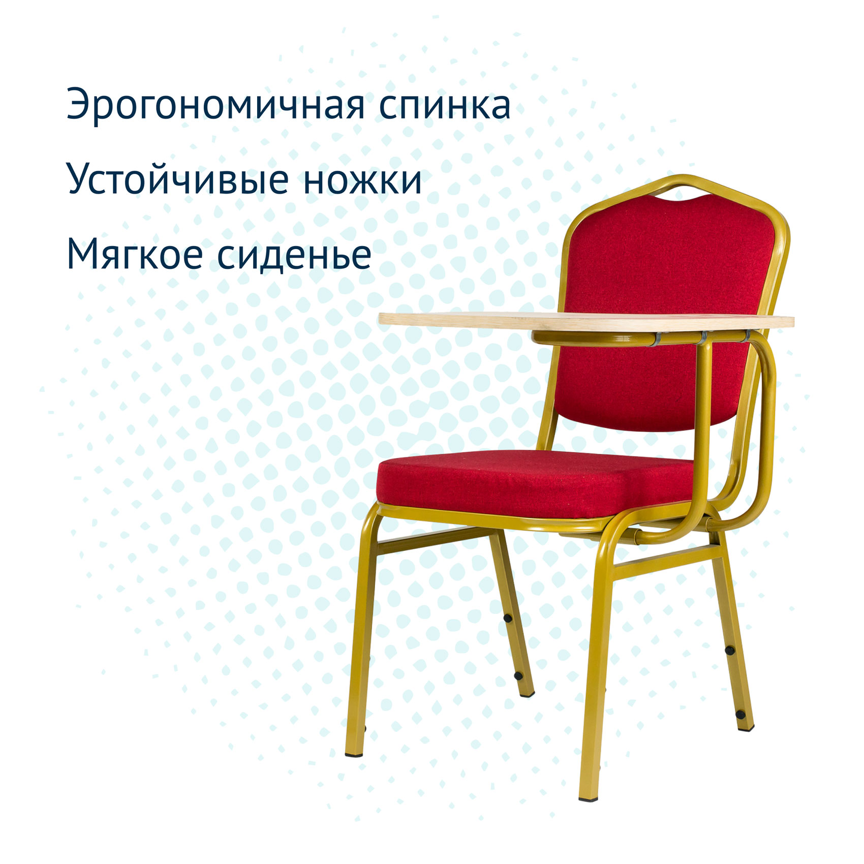 Оптовая продажа. Стулья Хит — универсальная модель, которая прекрасно подходит для банкетного зала, а также кафе и ресторана. Эти стулья имеют металлический каркас — сталь, благодаря чему создается повышенная устойчивость и износостойкость. Оснащенный эргономичными подлокотниками, он обеспечивает поддержку и комфорт во время длительных мероприятий. Стул оборудован удобным пюпитром, что делает его идеальным для ученических аудиторий, лекционных залов или конференций. Они рассчитаны на повседневное пользование и имеют большой эксплуатационный срок. Мягкая обивка стула обеспечит комфортное времяпрепровождение, современный, европейский дизайн позволяет удачно гармонировать практически с любым стилем интерьера. Цена на стул зависит от материала пюпитра. Итоговая стоимость уточняется менеджером. Пюпитры отправляются отдельно от пачки стула в коробках.