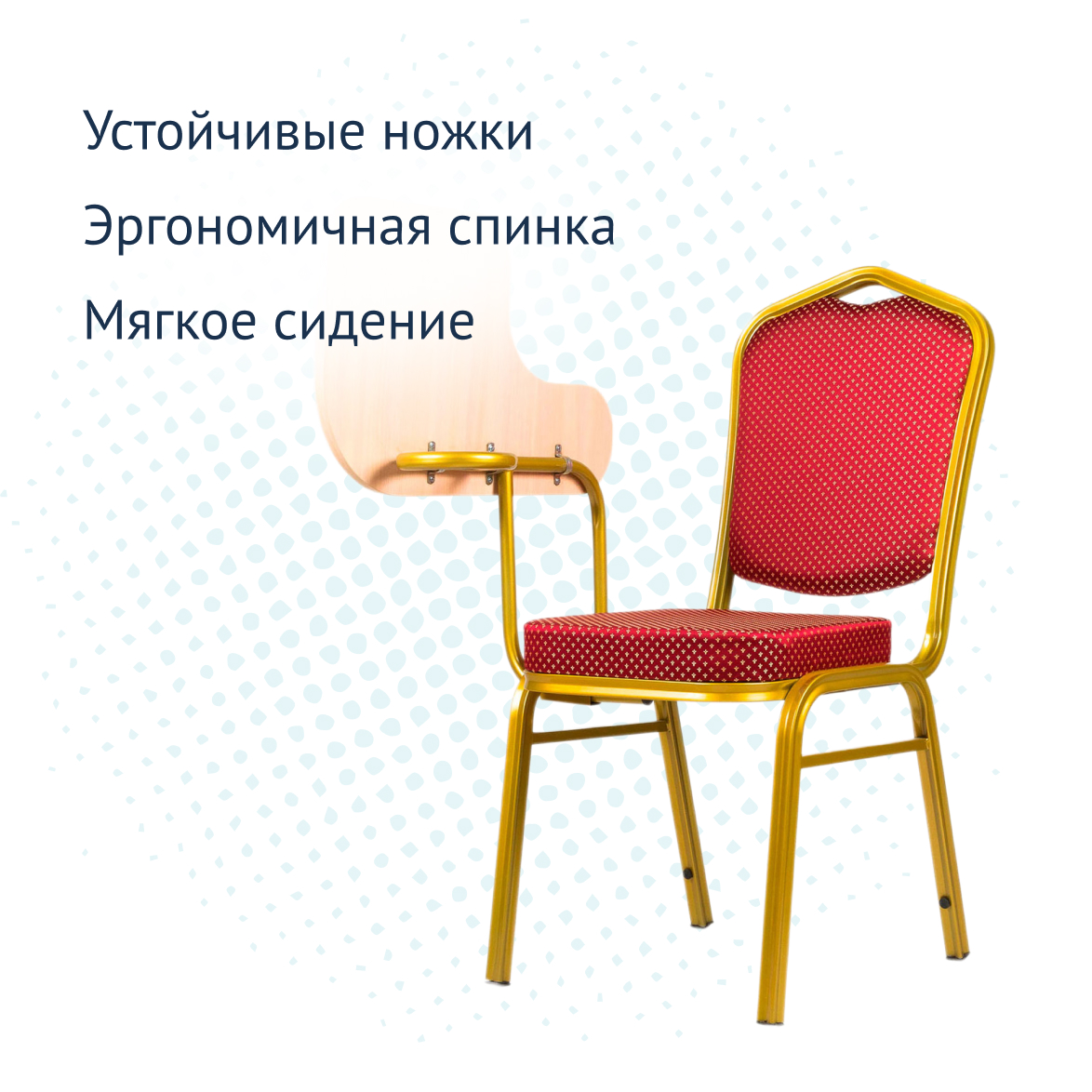 Оптовая продажа. Стулья Хит — универсальная модель, которая прекрасно подходит для банкетного зала, а также кафе и ресторана. Эти стулья имеют металлический каркас — сталь, благодаря чему создается повышенная устойчивость и износостойкость. Стул оборудован удобным пюпитром, что делает его идеальным для ученических аудиторий, лекционных залов или конференций. Они рассчитаны на повседневное пользование и имеют большой эксплуатационный срок. Мягкая обивка стула обеспечит комфортное времяпрепровождение, современный, европейский дизайн позволяет удачно гармонировать практически с любым стилем интерьера.