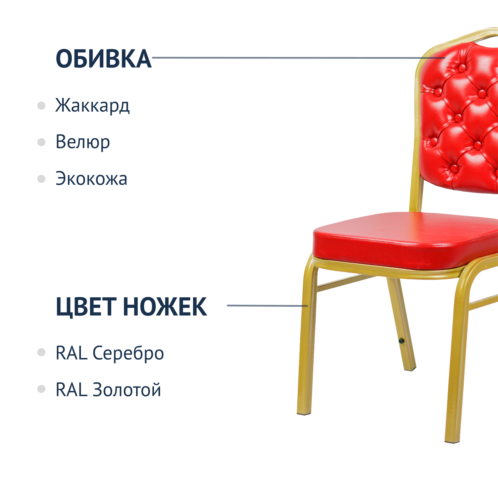 Стул Хит 25 мм, золото, красная экокожа, с каретной стяжкой