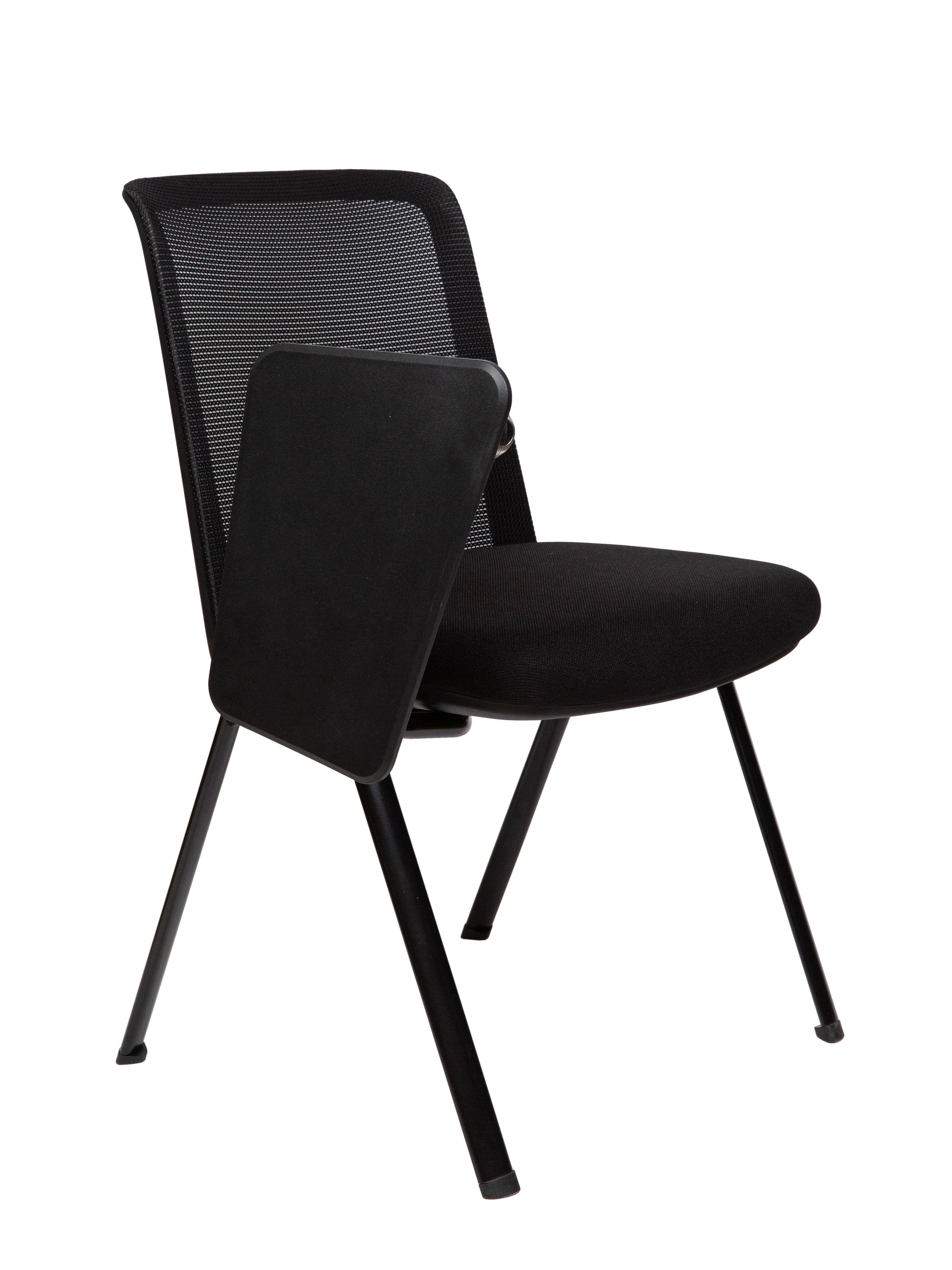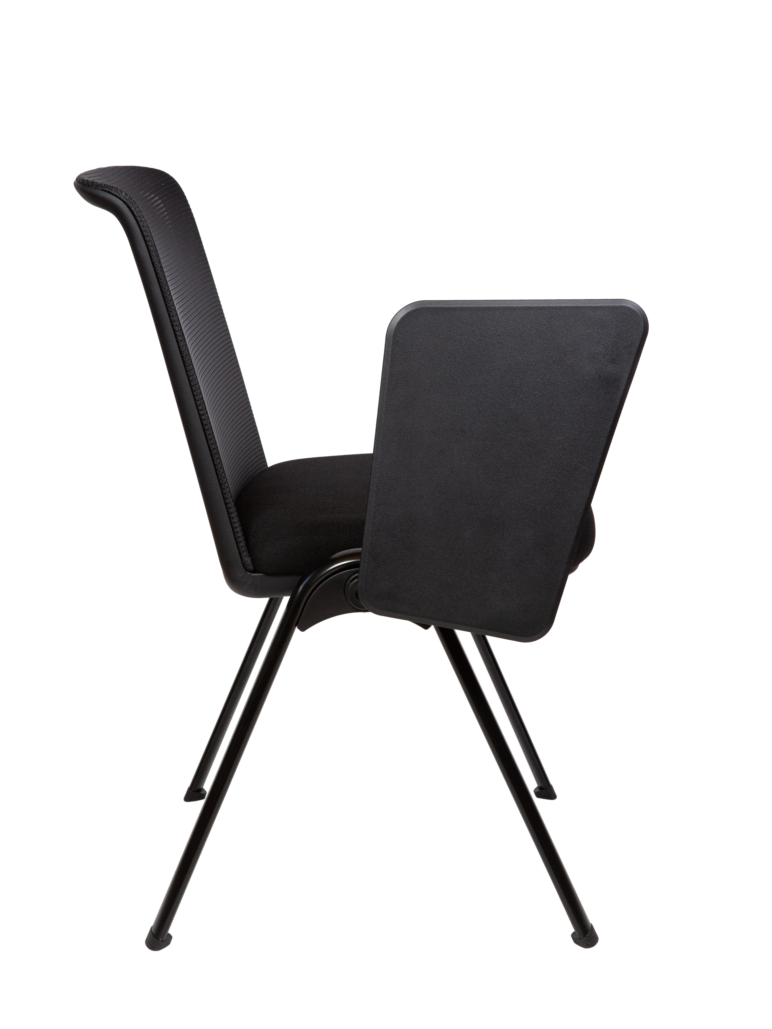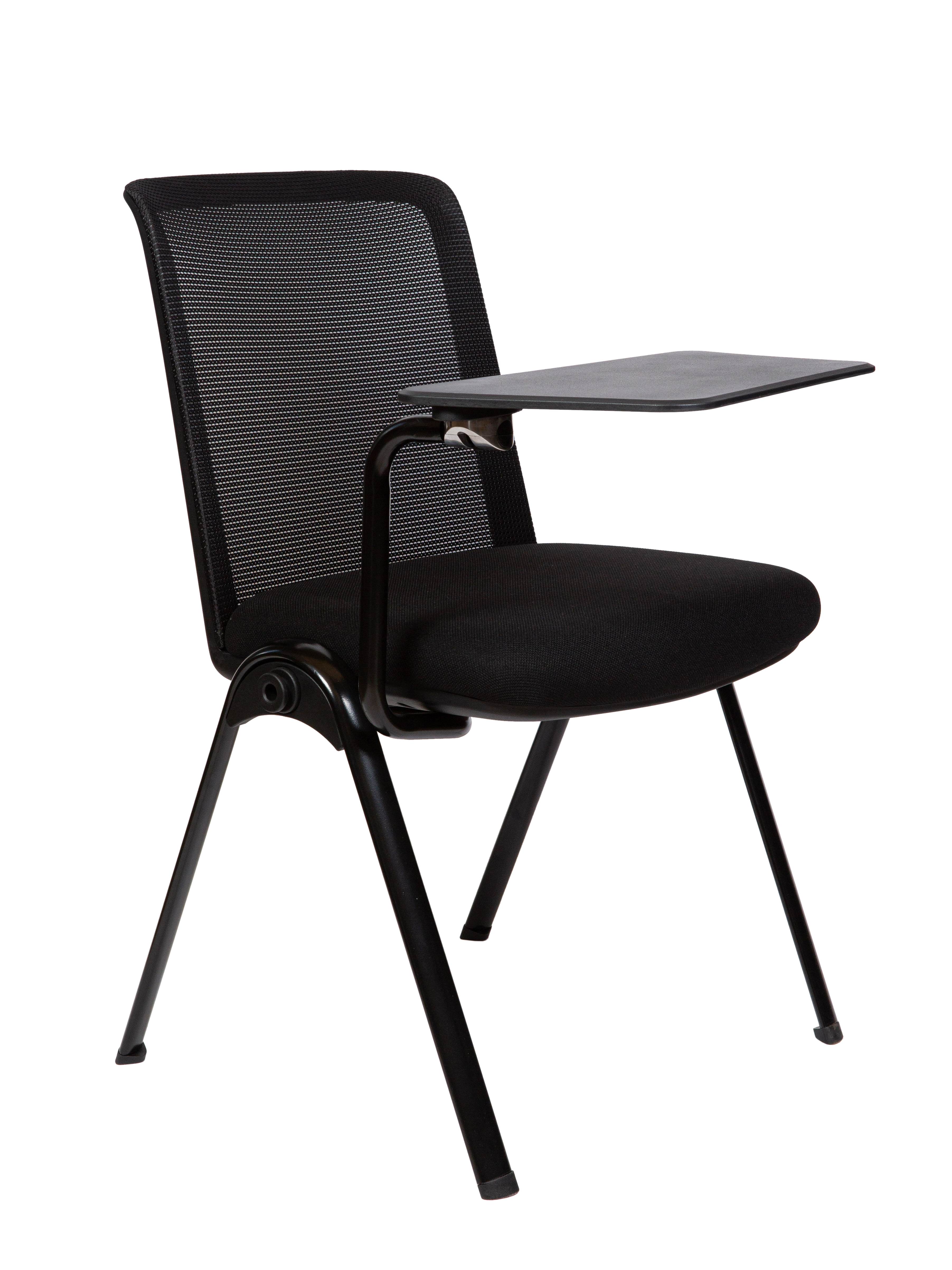 Современный офисный стул для учебных помещений и зон ожиданий. Пластик. Сиденье ткань, Спинка сетка. Цвет пластика черный . Основание металл, черный. Пюпитр. Стул выдерживает нагрузку до 90 кг.