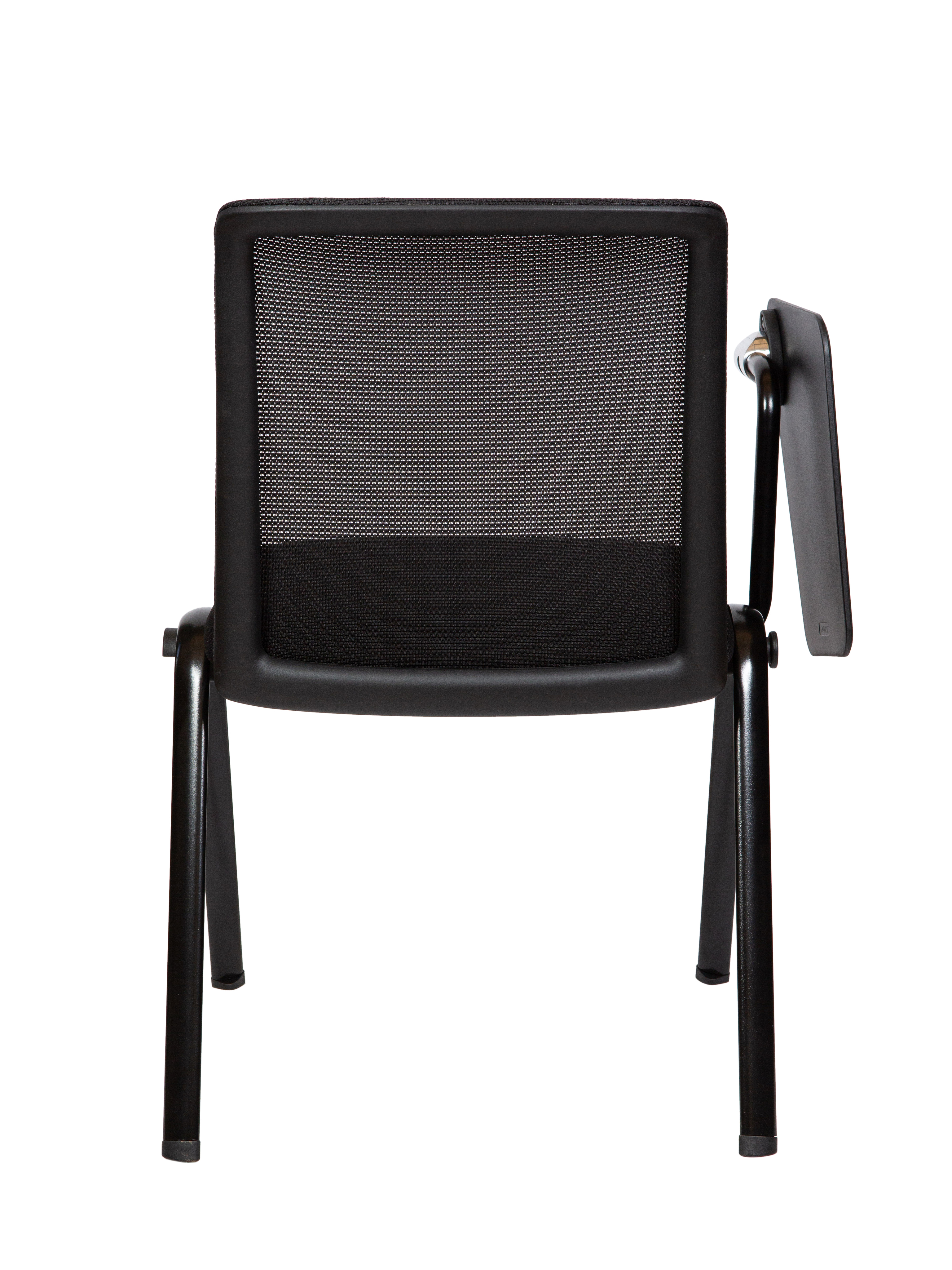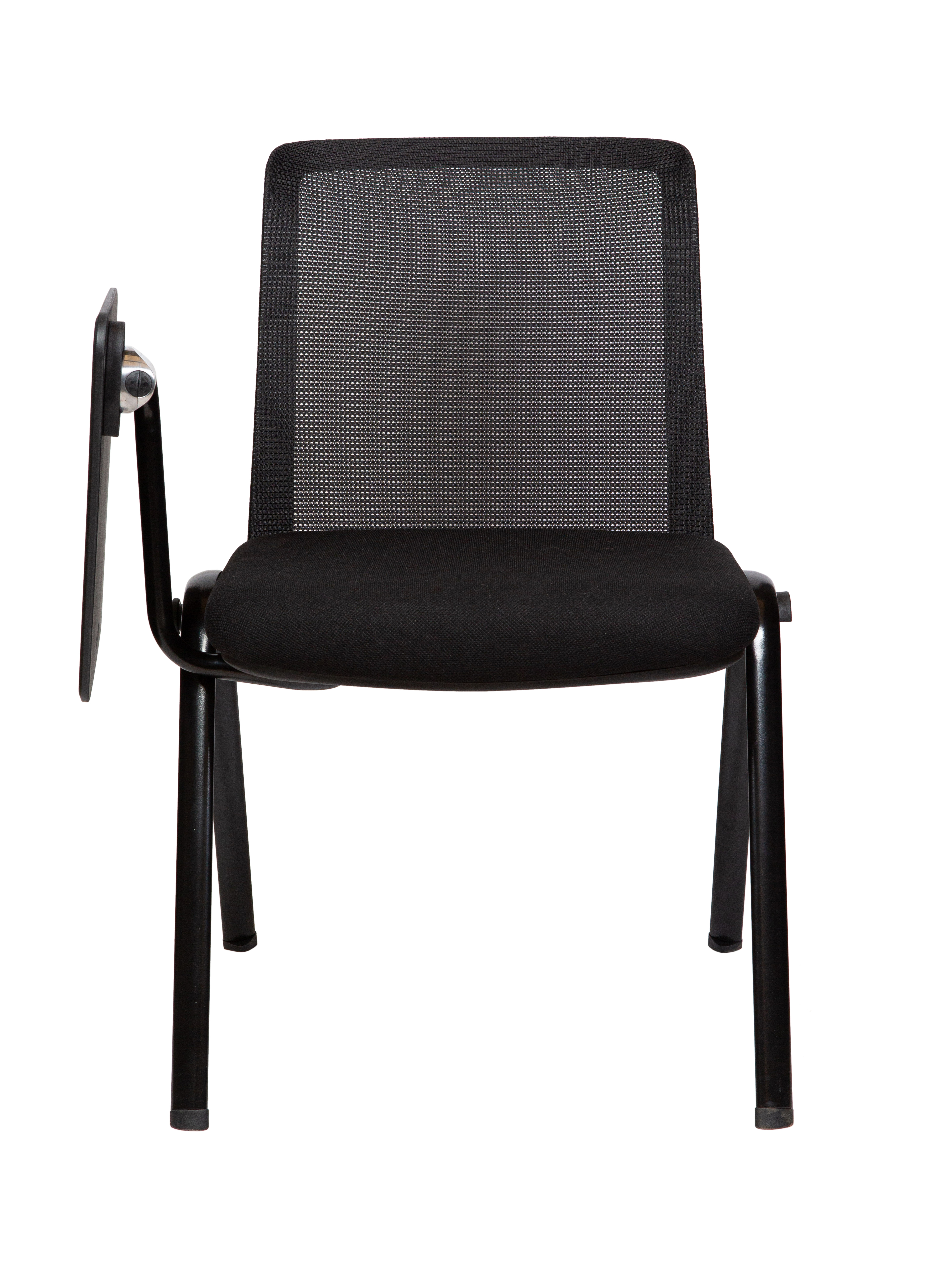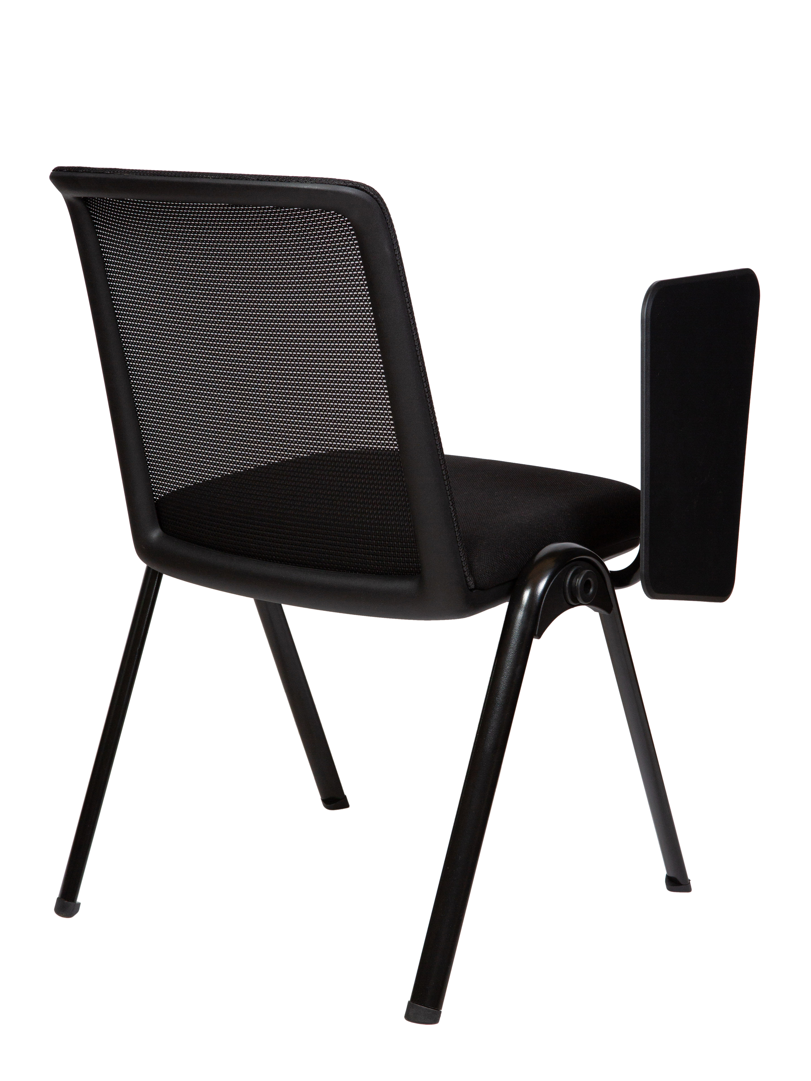 Современный офисный стул для учебных помещений и зон ожиданий. Пластик. Сиденье ткань, Спинка сетка. Цвет пластика черный . Основание металл, черный. Пюпитр. Стул выдерживает нагрузку до 90 кг.