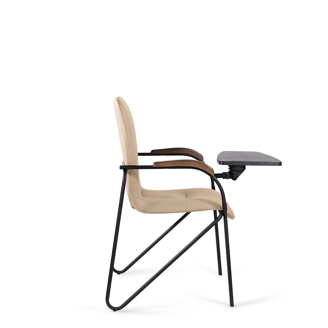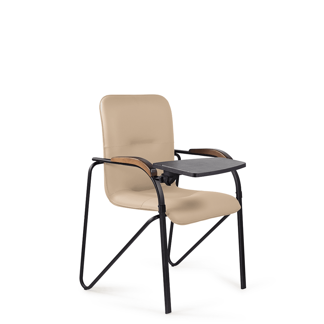 Конференц-кресло идеально будет смотреться как в офисе, так и дома. Интересный каркас и деревянные накладки на металлических подлокотниках придают креслу элегантный внешний вид. К креслу прилагается столик, выполненный из пластика. Модель отлично подойдет для конференц-залов, переговорных, актовых залов.