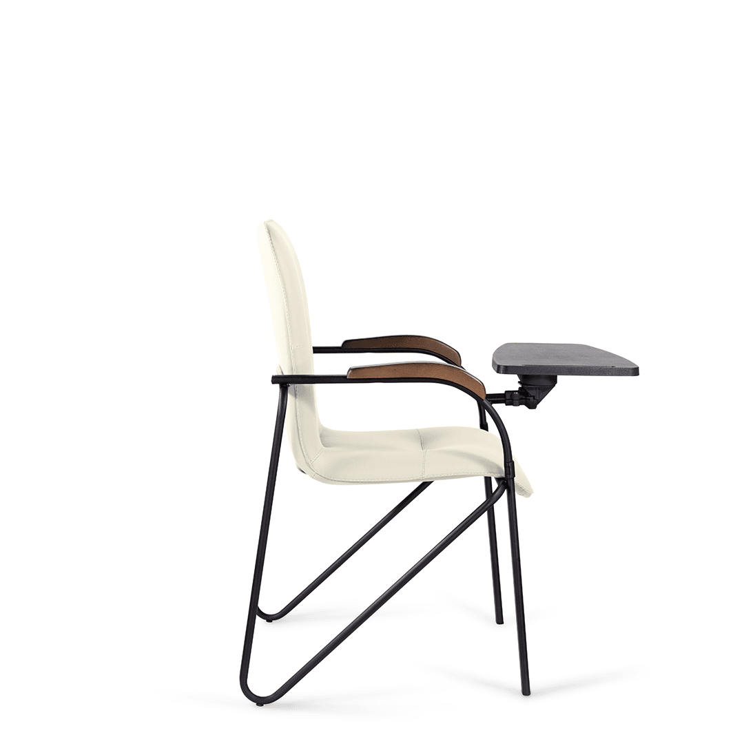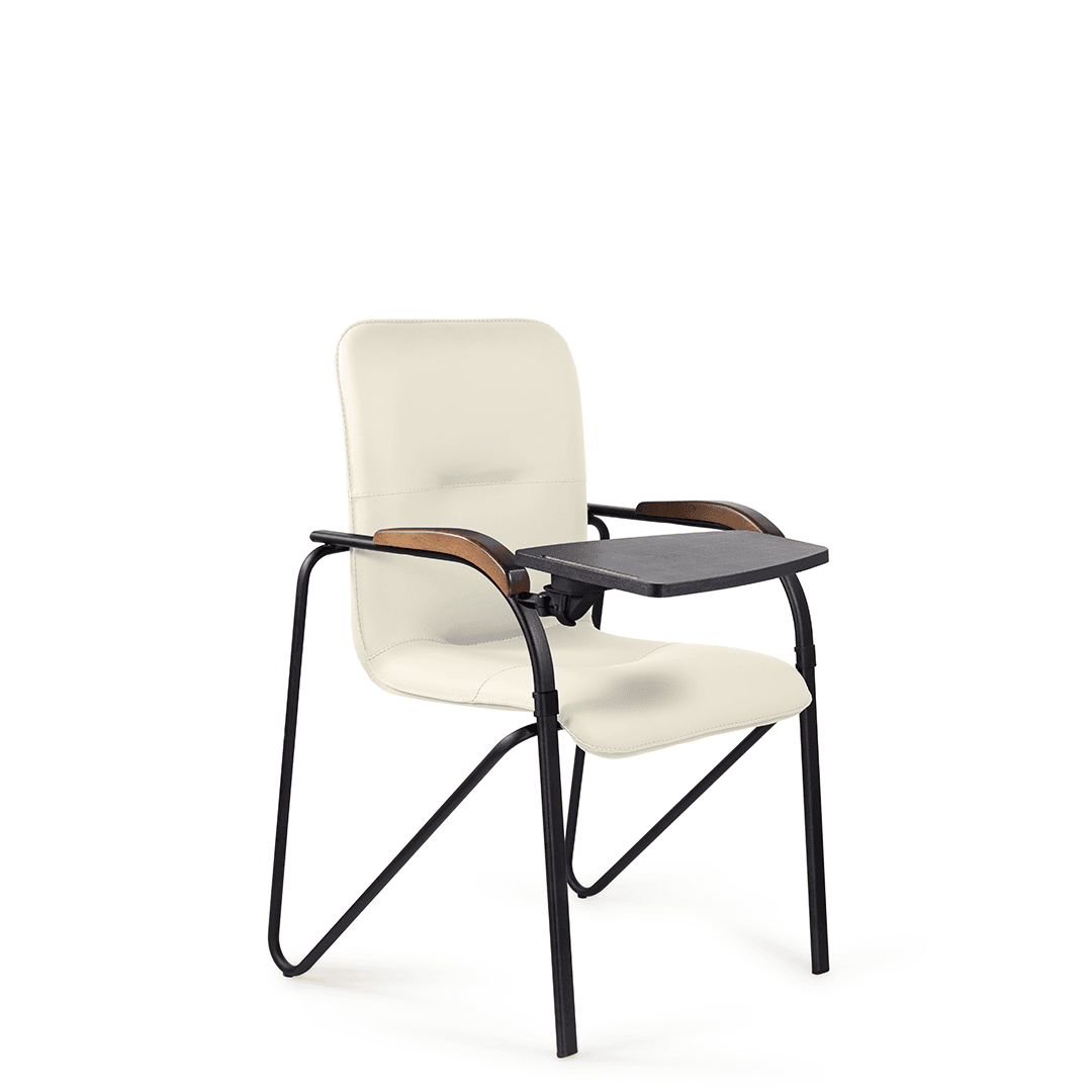 Конференц-кресло идеально будет смотреться как в офисе, так и дома. Интересный каркас и деревянные накладки на металлических подлокотниках придают креслу элегантный внешний вид. К креслу прилагается столик, выполненный из пластика. Модель отлично подойдет для конференц-залов, переговорных, актовых залов.