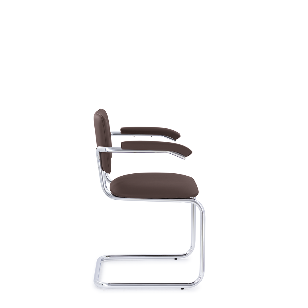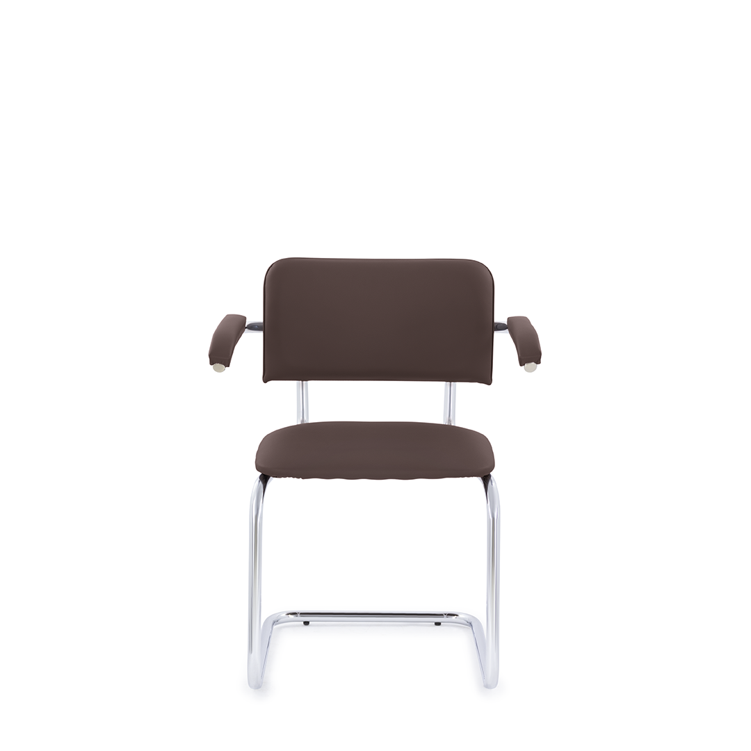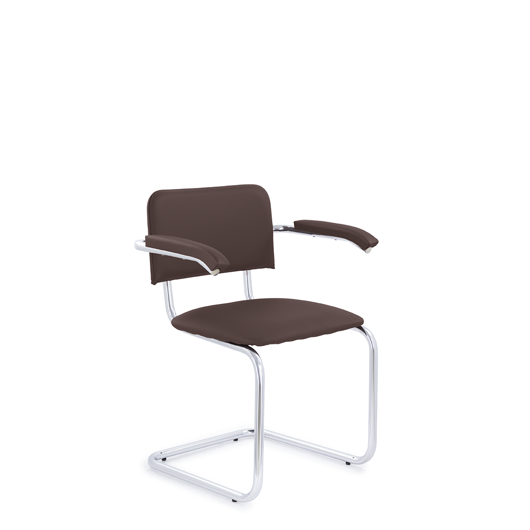Классический стул для посетителей с подлокотниками, который отлично подойдет как для офиса, так и для дома. Конструкция стула обеспечивает легкий эффект качания. Хромированный каркас, подлокотники с мягкими накладками, мягкое сиденье и спинка. Максимальная нагрузка 150 кг.