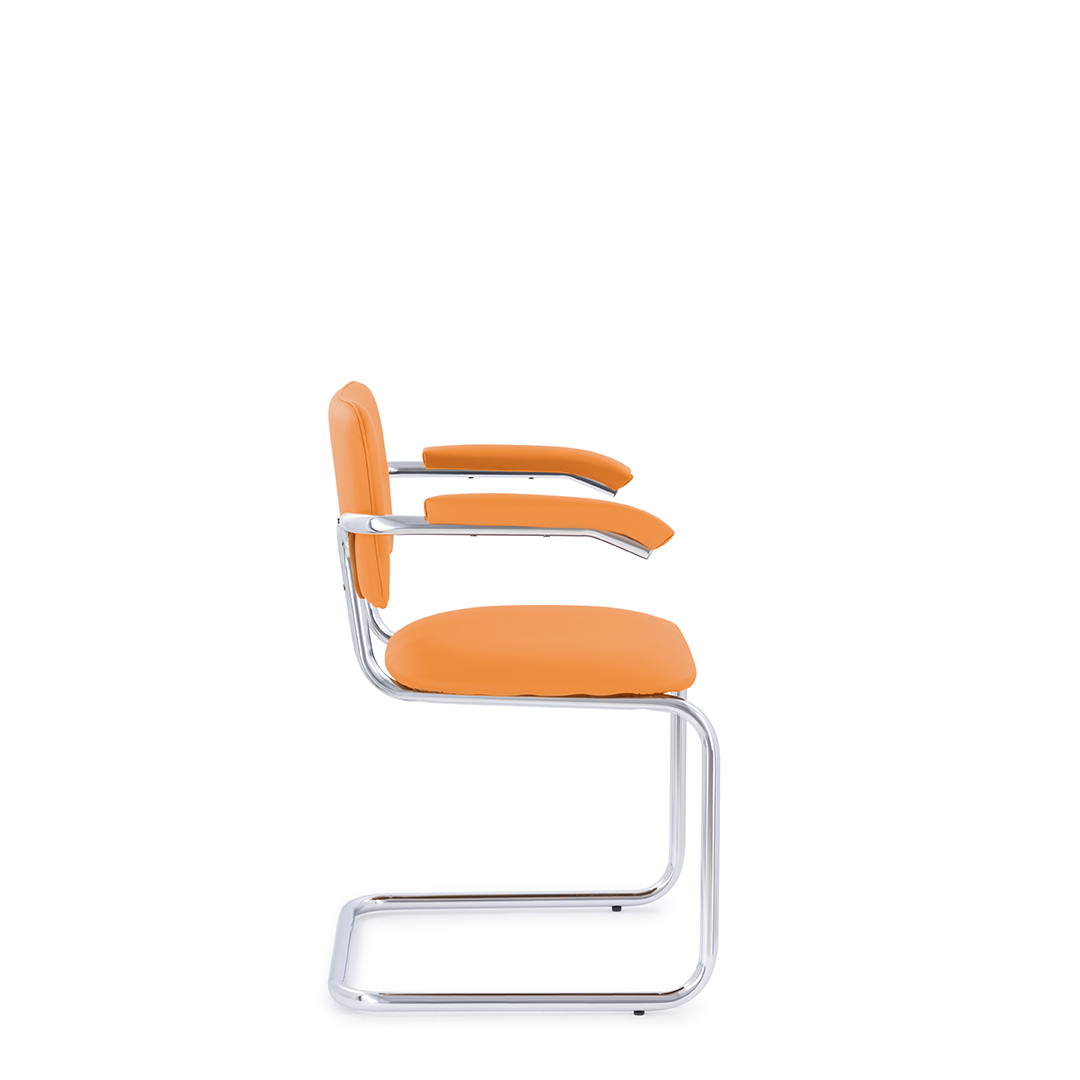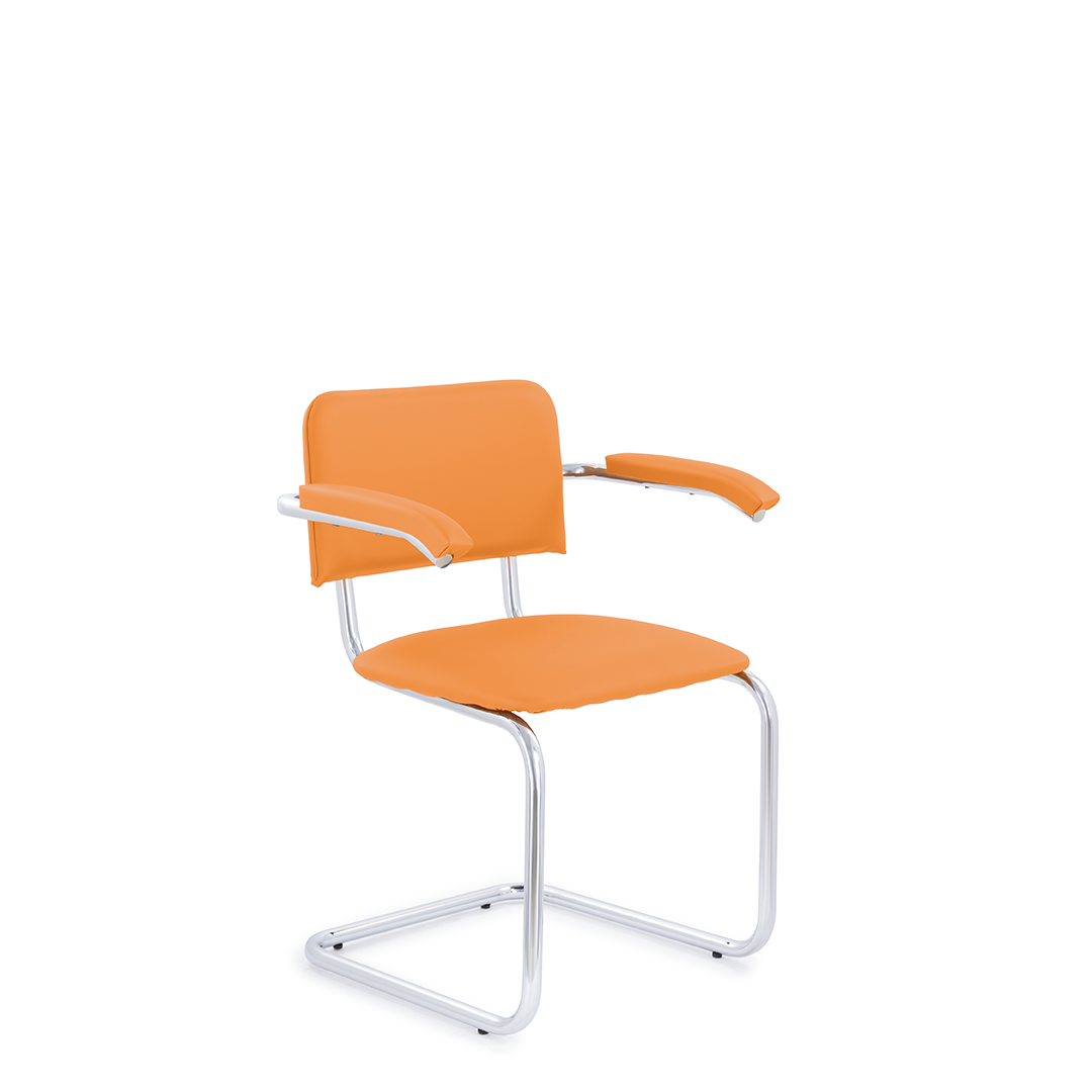 Классический стул для посетителей с подлокотниками, который отлично подойдет как для офиса, так и для дома. Конструкция стула обеспечивает легкий эффект качания. Хромированный каркас, подлокотники с мягкими накладками, мягкое сиденье и спинка. Максимальная нагрузка 150 кг.