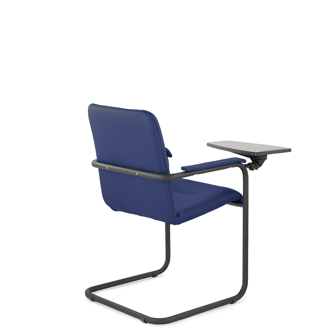 Элегантное конференц-кресло для посетителей имеет широкий выбор расцветки обивки кресла, мягкие подлокотники с накладками люкс и окрашенный в черный цвет каркас. К креслу прилагается столик, выполненный из пластика. Модель отлично подойдет для конференц-залов, переговорных, актовых залов.