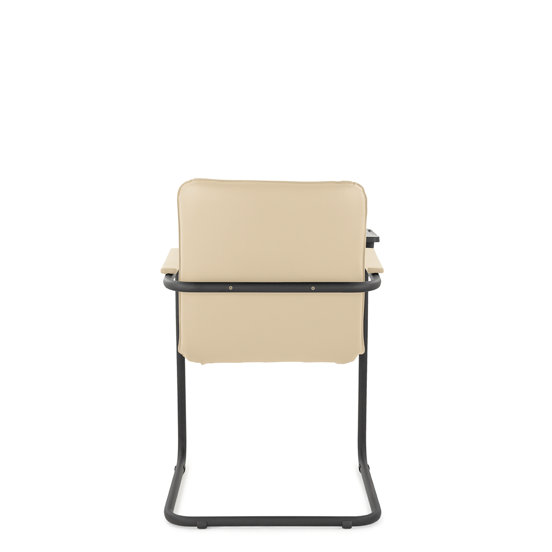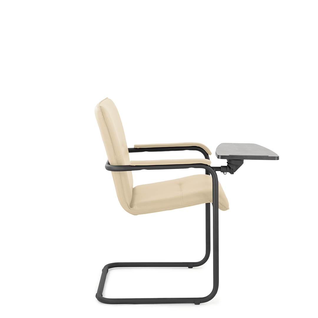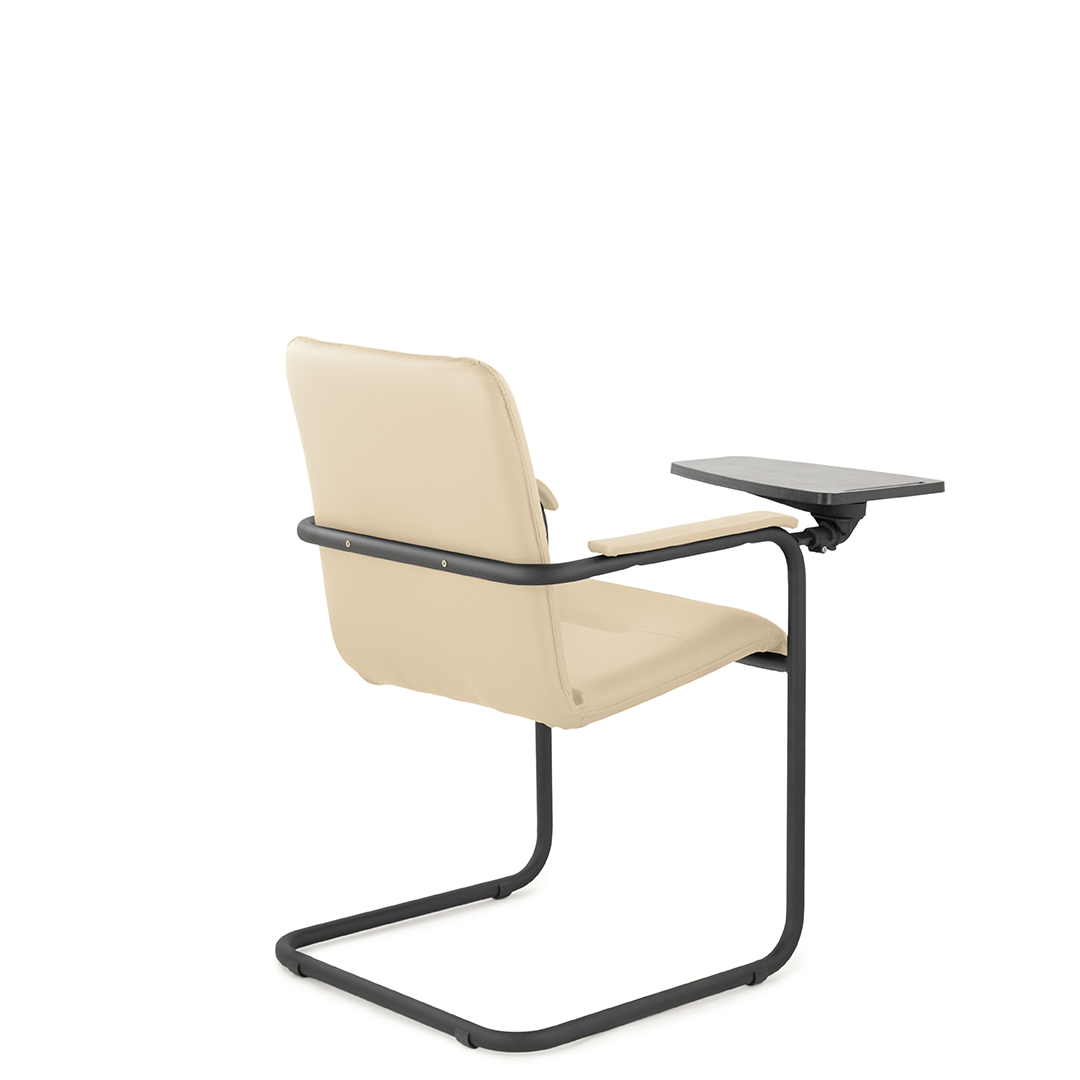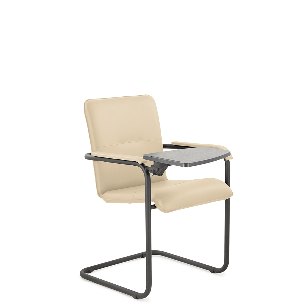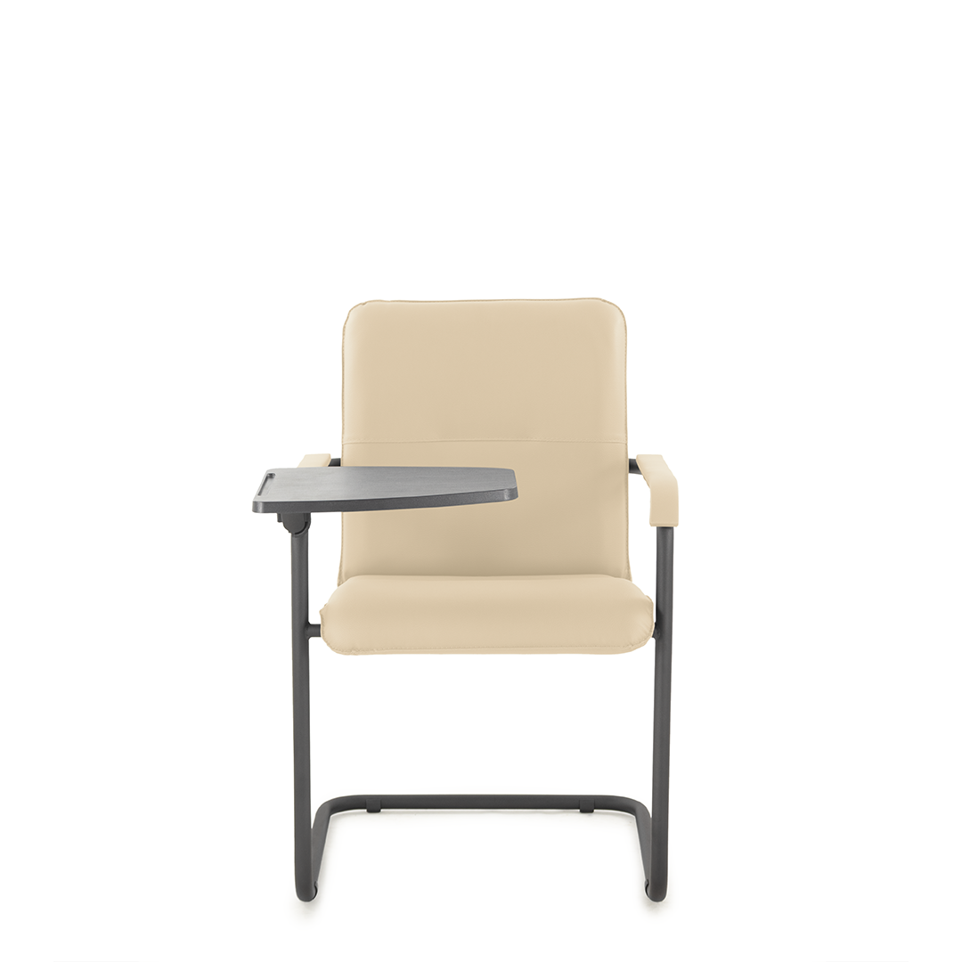 Элегантное конференц-кресло для посетителей имеет широкий выбор расцветки обивки кресла, мягкие подлокотники с накладками люкс и окрашенный в черный цвет каркас. К креслу прилагается столик, выполненный из пластика. Модель отлично подойдет для конференц-залов, переговорных, актовых залов.