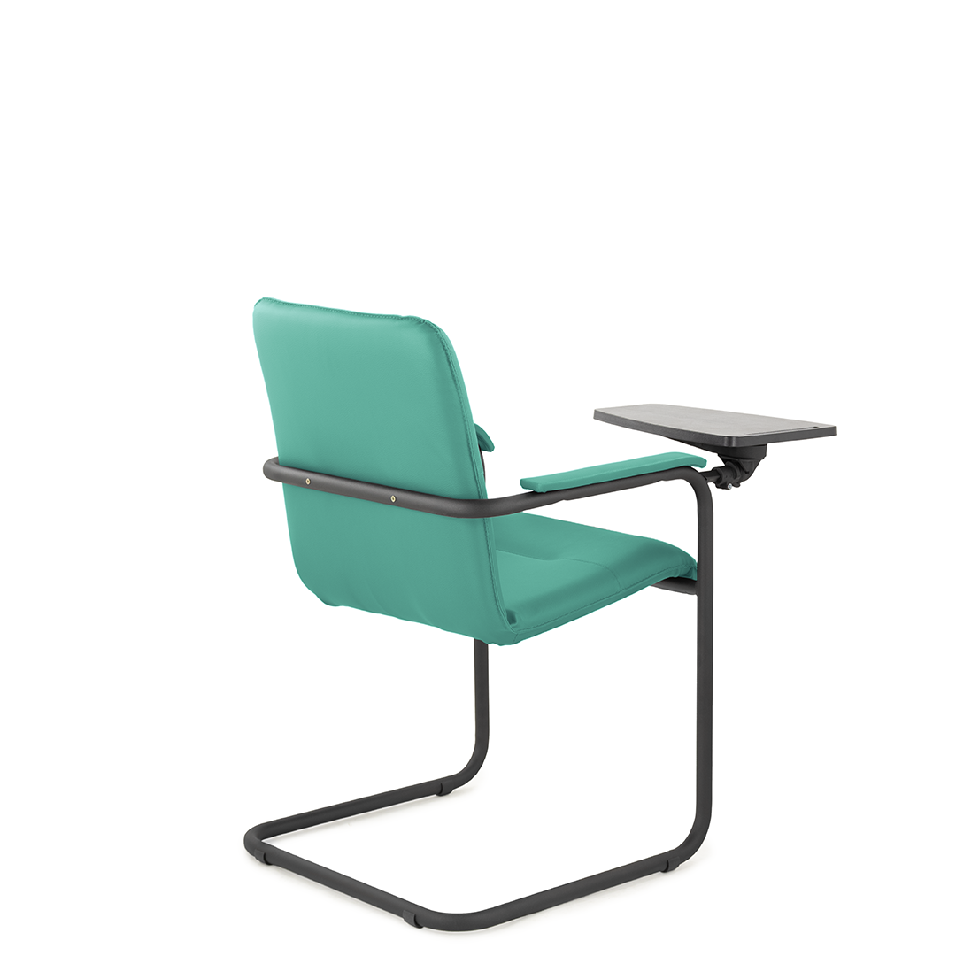 Элегантное конференц-кресло для посетителей имеет широкий выбор расцветки обивки кресла, мягкие подлокотники с накладками люкс и окрашенный в черный цвет каркас. К креслу прилагается столик, выполненный из пластика. Модель отлично подойдет для конференц-залов, переговорных, актовых залов.