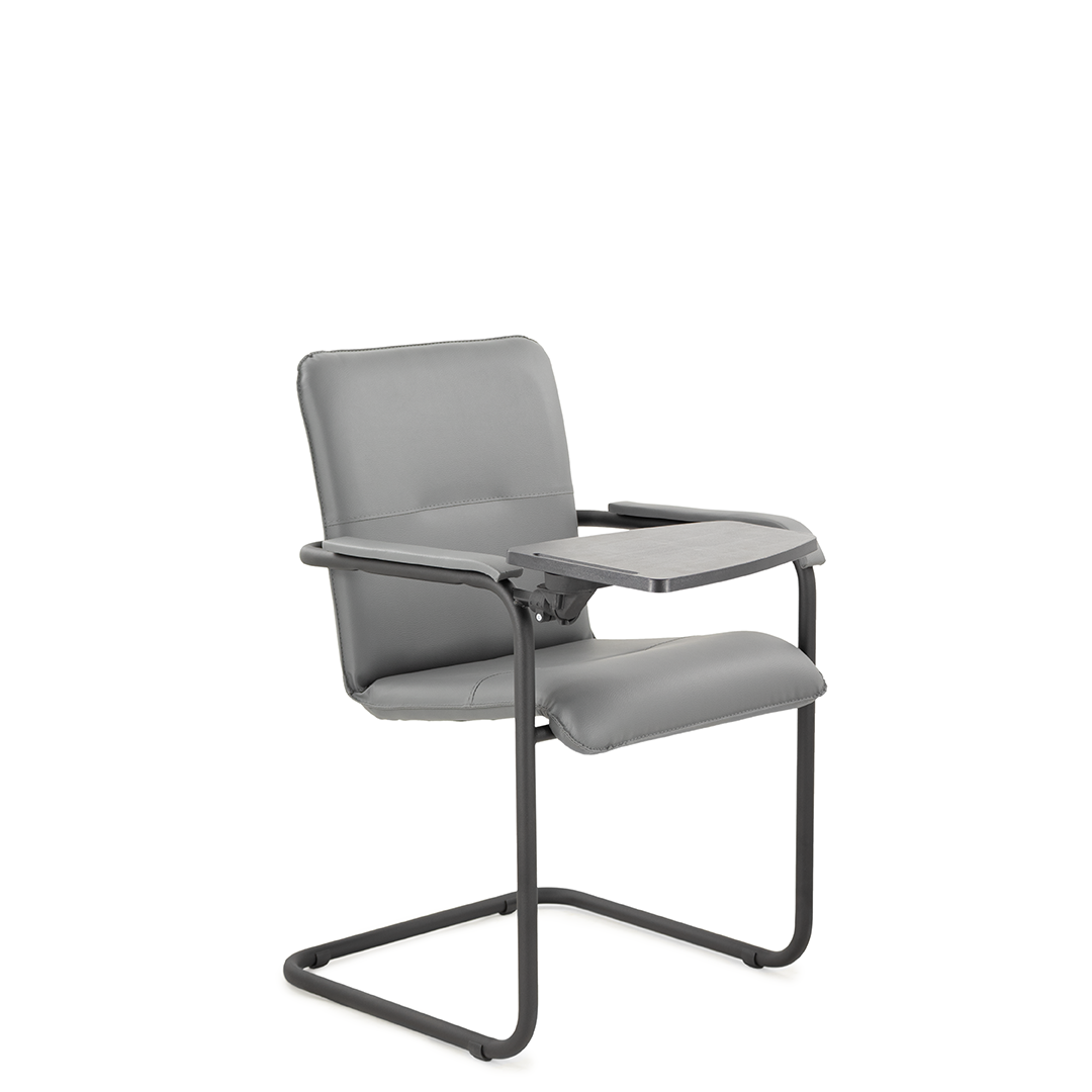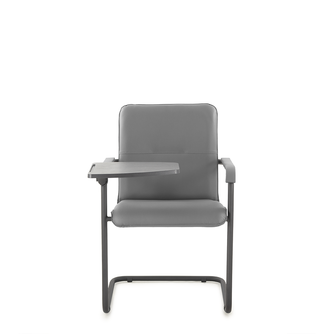 Элегантное конференц-кресло для посетителей имеет широкий выбор расцветки обивки кресла, мягкие подлокотники с накладками люкс и окрашенный в черный цвет каркас. К креслу прилагается столик, выполненный из пластика. Модель отлично подойдет для конференц-залов, переговорных, актовых залов.