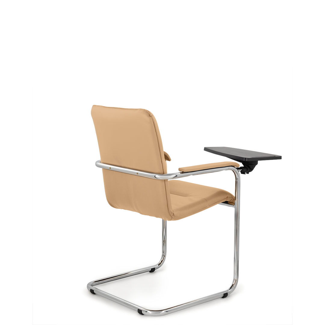 Элегантное кресло для посетителей имеет широкий выбор расцветки обивки кресла, мягкие подлокотники с накладками люкс и хромированный каркас. К креслу прилагается столик, выполненный из пластика. Модель отлично подойдет для конференц-залов, переговорных, актовых залов.