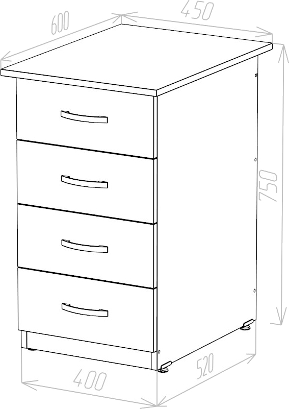 Тумба приставная 4 ящика
