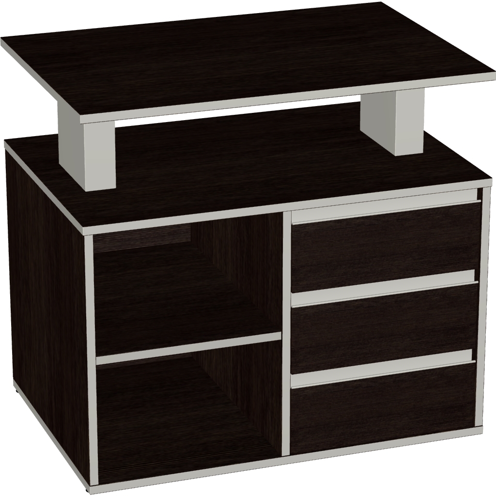 Кромка рабочих поверхностей - плоская ПВХ толщиной 2 мм (крышки столов, тумб и шкафов).