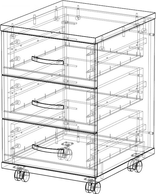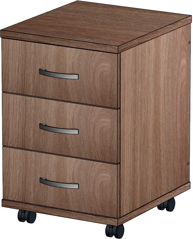 Тумба изготовлена из ЛДСП. Толщина ЛДСП топа 22 мм. Фасады, опоры и внутреннее наполнение изготовлено из ЛДСП 16 мм. Задняя стенка тумбы изготовлена из ЛДСП 16 мм. Дно ящика изготовленыо из ДВПО. Кромка ПВХ, на топе и фасадах толщиной 2 мм, каркас и наполнение 0,4 мм. Размеры внутреннего пространства ящиков: высота 120 мм, глубина 384 мм. Направляющие шариковые полно выкатные. Колесные опоры диаметром 50 мм. со стопором, в нажатом положение предотвращающие движение тумбы. Габариты изделия (длина, ширина, высота): 400*450*610 Цвет изделия: ясень шимо темный