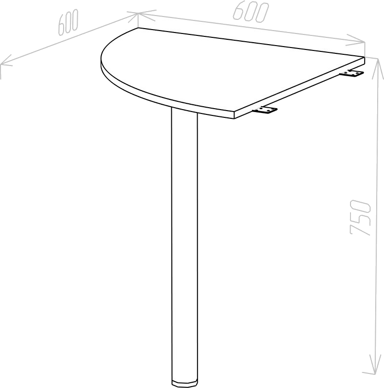 Столешница изготовлена из ЛДСП толщиной 16 мм. Кромка ПВХ толщиной 2 мм. Регулируемая по высоте хромированная опора. В комплект входит: 1 хромированная опора с усовым креплением, 4 плашки для крепления и саморезы. Габариты изделия (длина, ширина, высота): 600*600*750 Цвет изделия: ясень шимо темный